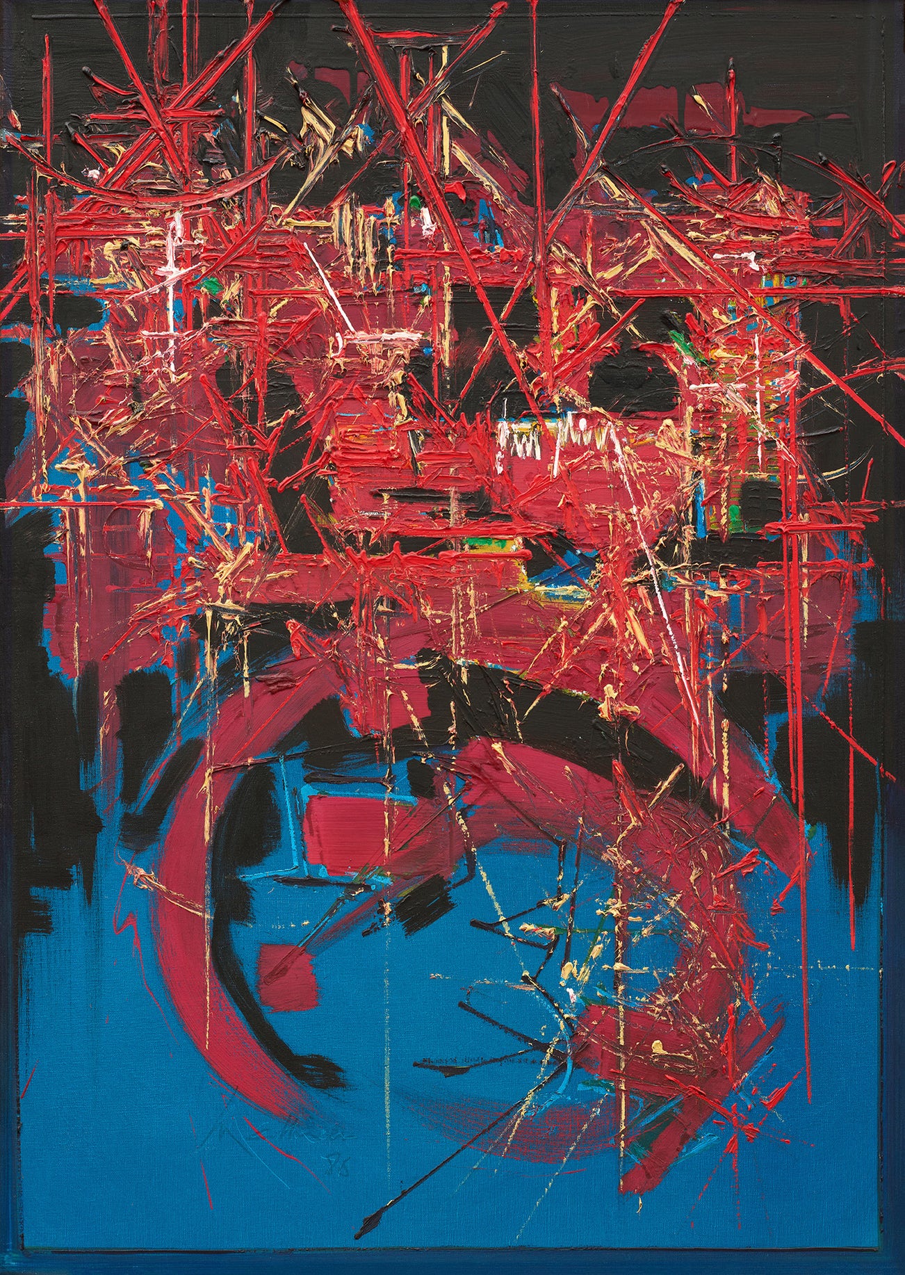signed and dated 'Mathieu 86' lower left; titled 'ARMENIE' on the stretcher