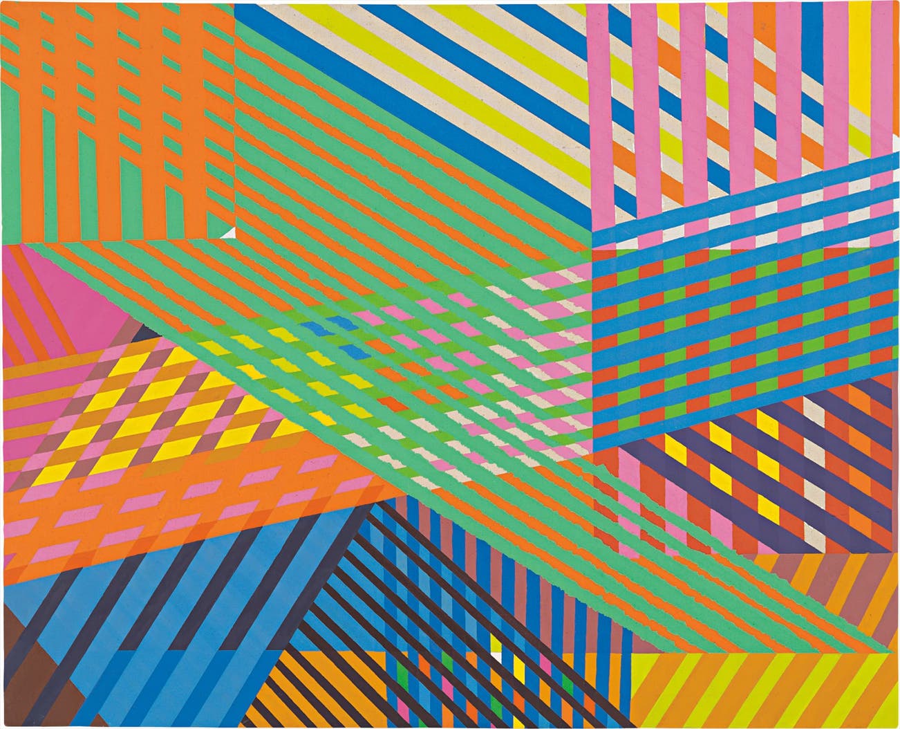 His contributions as an artist were equally significant and influential in his adopted homeland, Venezuela. Influenced by international movements of abstraction, constructivism and informalism, Leufert produced a substantial body of work consisting of monotypes, lose organic drawings and painting, all of which were a departure from his graphic art. The present lot is a captivating painting imbued with intrinsic linear patterns. On the one hand, the patterns are reminiscent of the artist’s background in graphic design. On the other hand, they allude to the pure abstractions of his Venezuelan contemporaries, Jesús Rafael Soto, Alejandro Otero and Carlos Cruz-Diez, in the sense that the juxtaposition of these complex patterns captures light and the explosion of color on the canvas. Leufert’s works have been exhibited extensively in Caracas, the United States and Europe and his historical significance is bolstered by his inclusion in the permanent collection of numerous prestigious institutions, such as the Museum of Modern Art, New York; Museum of Fine Arts, Houston; and the Museo de Bellas Artes de Caracas, amongst others.