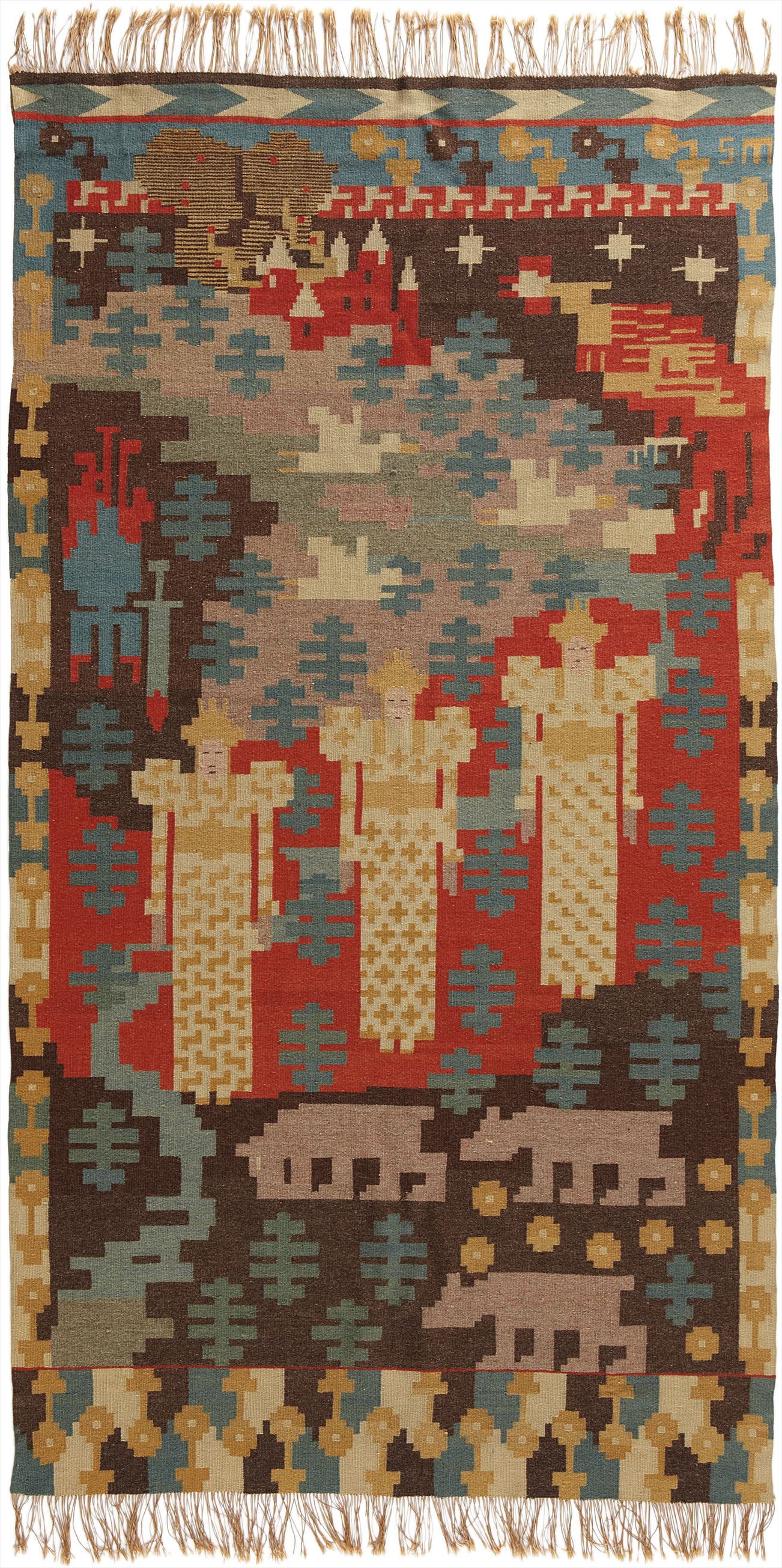 The initials SM belong to the artist’s wife, Sigrun Munthe, for whom Gerhard Munthe designed ‘Den Røde Hane’.
