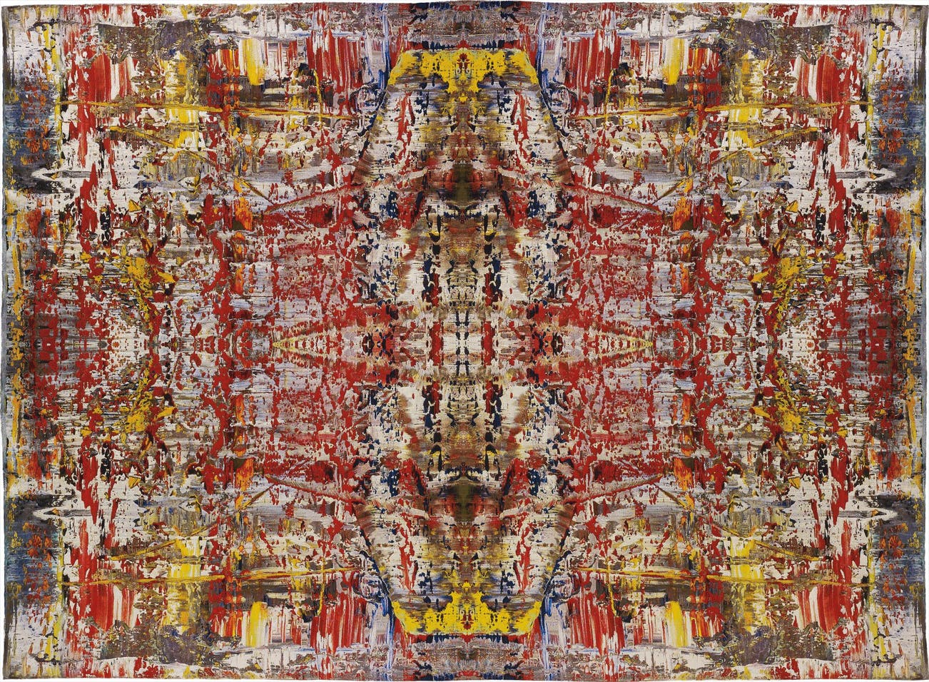 Richter’s pseudo-psychological enquiry follows a multiplying aesthetic based on the Rorschach test, a psychological projective examination of personality invented by the Swiss psychiatrist Hermann Rorschach. In a similar vein, in 1984 Andy Warhol produced a series modelled on the famous 'inkblot' assessment. Warhol achieved his visual lexicon by painting one side of the canvas and folding it vertically to imprint the other half. In the tapestries, however, the reflections of [724-4] derive from the digital and are subsequently machine produced, thus entirely divorced from the artist’s hand. Mathematical and inherently mechanical, Richter espouses a paradoxical perspective in which an organic and disorderly process is translated into a calculated and automated order.