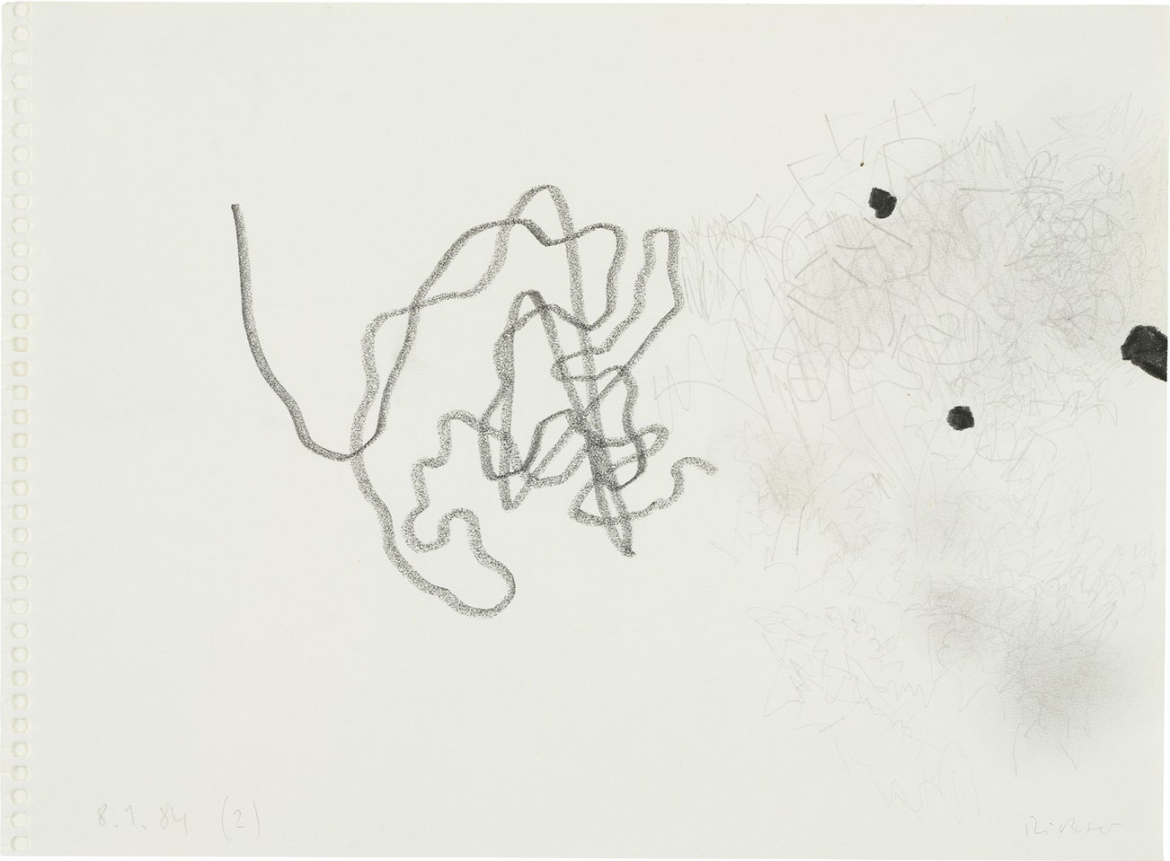 Richter's color palette of potent hues is all substance and "no style," in the artist's own words. From career start in 1962, Richter developed both his photorealist and abstracted languages side-by-side, producing voraciously and evolving his artistic style in short intervals. Richter's illusory paintings find themselves on the walls of the world's most revered museums—for instance, London’s Tate Modern displays the Cage (1) – (6), 2006 paintings that were named after experimental composer John Cage and that inspired the balletic 'Rambert Event' hosted by Phillips Berkeley Square in 2016.