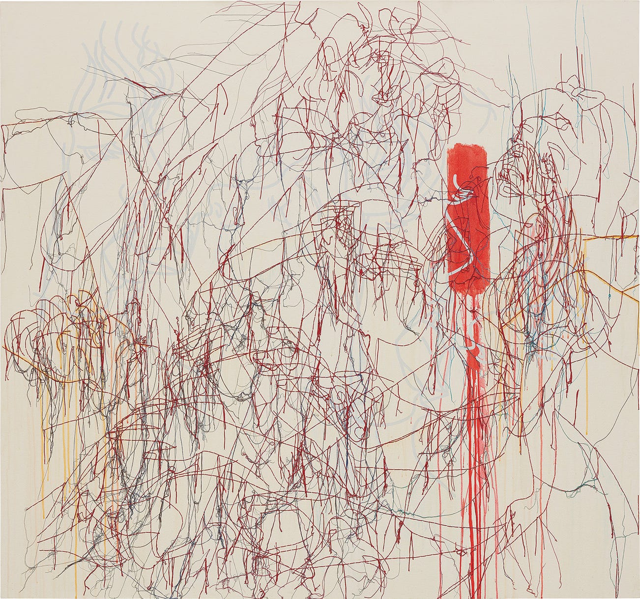 signed, titled and dated "Ghada Amer 04 DANCE ON A RED RYTHM" on the overlap; further signed "Ghada Amer" on the stretcher