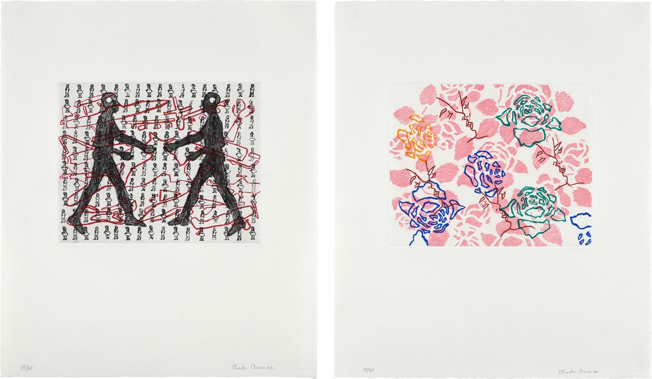 each numbered "28/40" lower left and signed and dated "Ghada Amer 00" lower right