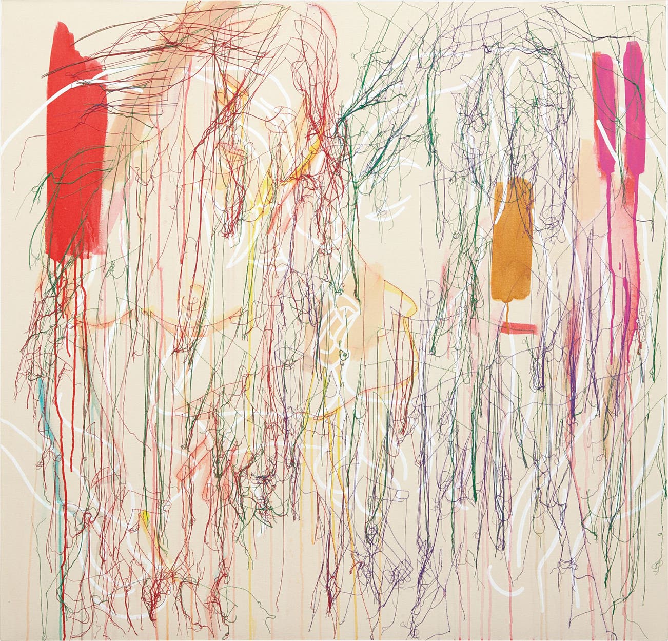 Signed, titled and dated twice "Ghada Amer 03 White Kiss" along the overlap and lower left turnover edge.