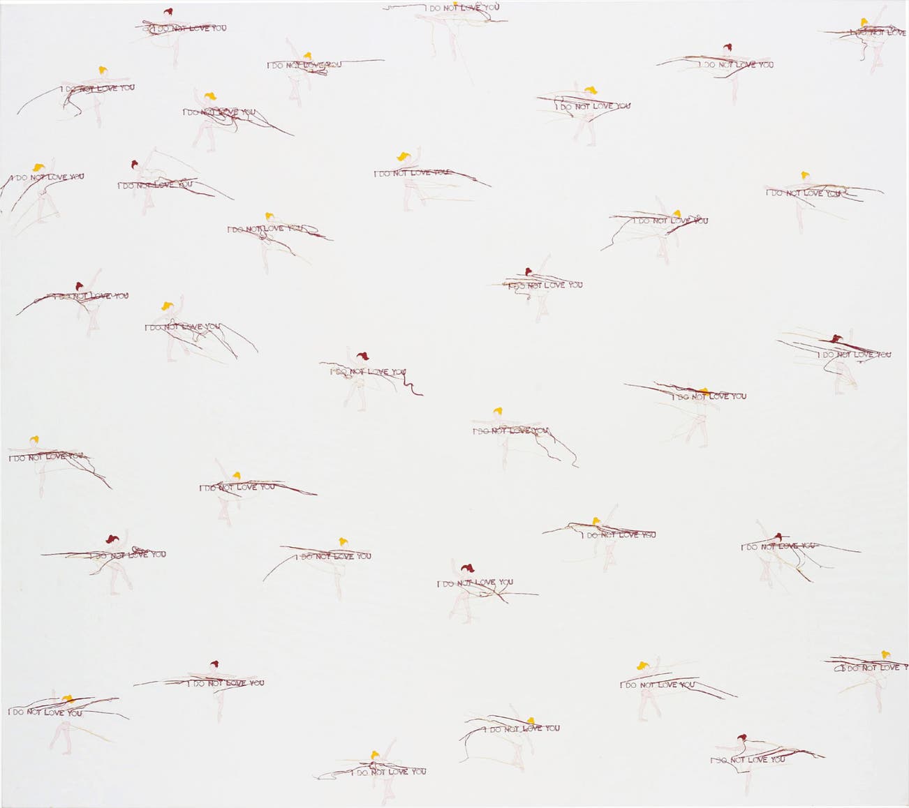 Signed, titled and dated 'Ghada Amer "I DO NOT LOVE YOU" 05' on the overlap.