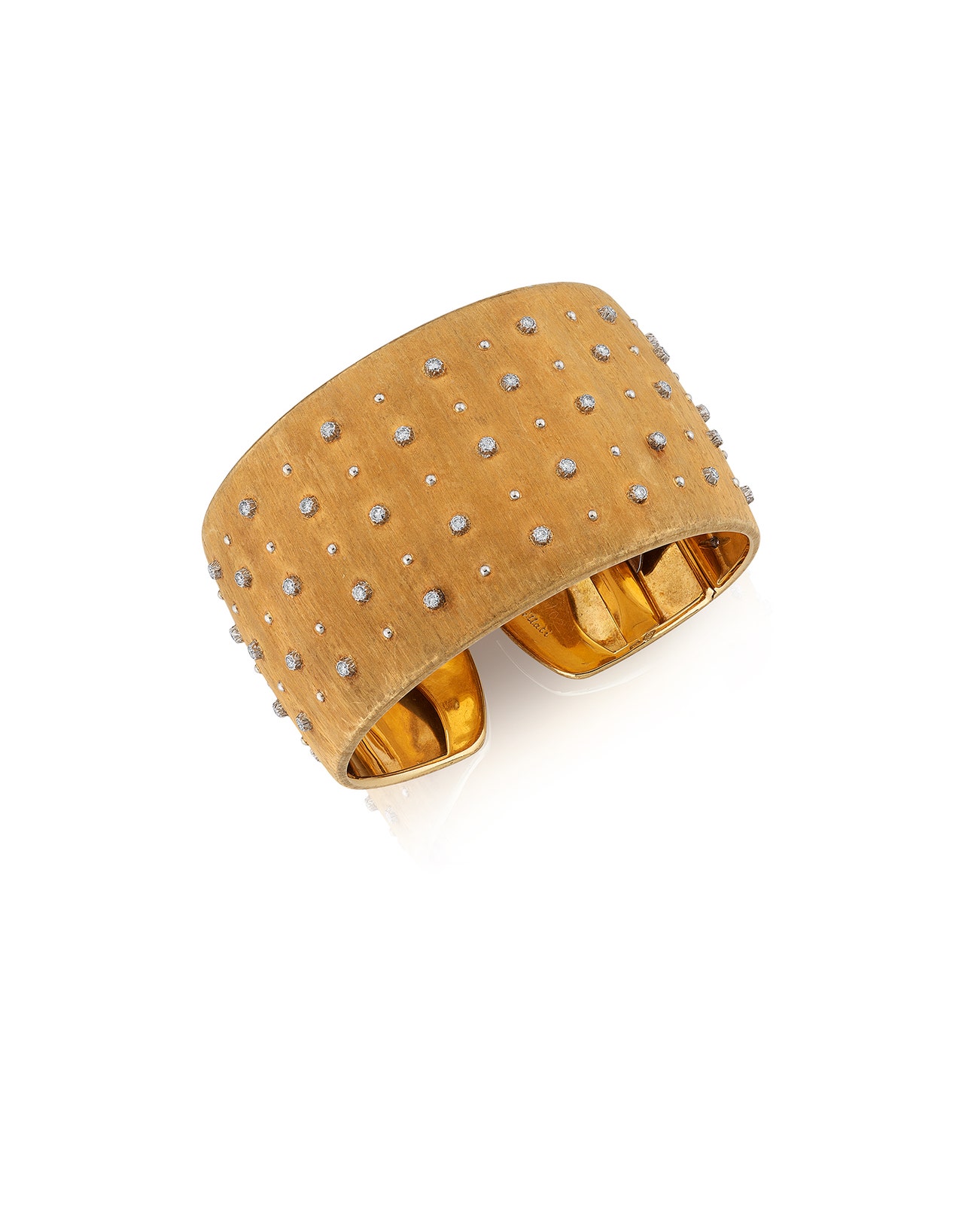 The brushed gold bangle embellished with brilliant-cut diamonds, inner circumference approximately 170mm, signed Gianmaria Buccellati, numbered.