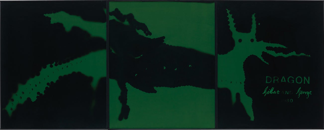 part three signed, titled and dated '"Dragon" Gilbert & George 1980' lower right