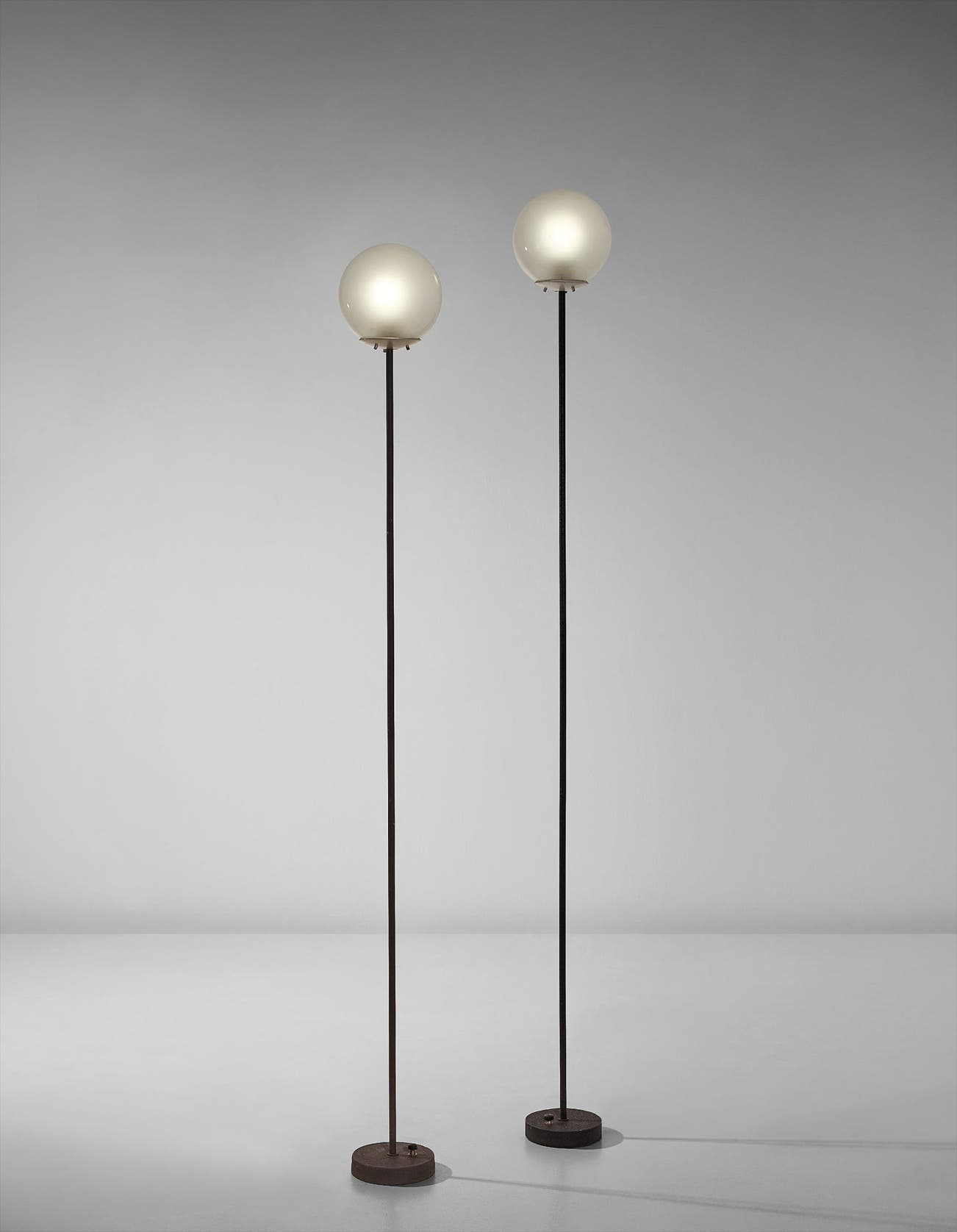Italian | B. 1912 D. 1985Rising above the devastation of World War II, post-war Italian design reached new heights of productivity and ingenuity, particularly in the realm of lighting. Gino Sarfatti is among the most celebrated lighting designers from this fruitful period. Before founding his company Arteluce in 1939, Sarfatti studied aeronautical engineering. He brought the inventiveness of a self-taught outsider to the field of lighting design, while his mechanical background lent lightness and ingenuity of construction. Poetic underpinnings are also evident in lamps such as model no. 1034 (sometimes referred to as the "Vine" lamp), which features a nearly 8' twisting brass stem graced with nine delicate, articulating white shades like buds on a flower.