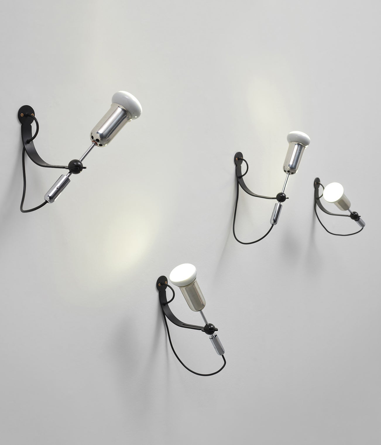 Italian | B. 1912 D. 1985Rising above the devastation of World War II, post-war Italian design reached new heights of productivity and ingenuity, particularly in the realm of lighting. Gino Sarfatti is among the most celebrated lighting designers from this fruitful period. Before founding his company Arteluce in 1939, Sarfatti studied aeronautical engineering. He brought the inventiveness of a self-taught outsider to the field of lighting design, while his mechanical background lent lightness and ingenuity of construction. Poetic underpinnings are also evident in lamps such as model no. 1034 (sometimes referred to as the "Vine" lamp), which features a nearly 8' twisting brass stem graced with nine delicate, articulating white shades like buds on a flower.