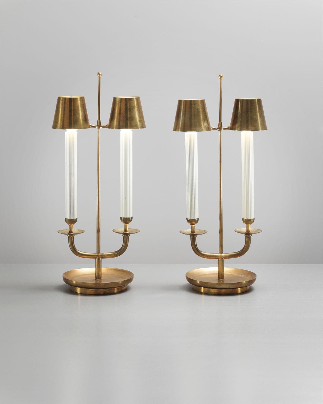 Italian | B. 1912 D. 1985Rising above the devastation of World War II, post-war Italian design reached new heights of productivity and ingenuity, particularly in the realm of lighting. Gino Sarfatti is among the most celebrated lighting designers from this fruitful period. Before founding his company Arteluce in 1939, Sarfatti studied aeronautical engineering. He brought the inventiveness of a self-taught outsider to the field of lighting design, while his mechanical background lent lightness and ingenuity of construction. Poetic underpinnings are also evident in lamps such as model no. 1034 (sometimes referred to as the "Vine" lamp), which features a nearly 8' twisting brass stem graced with nine delicate, articulating white shades like buds on a flower.