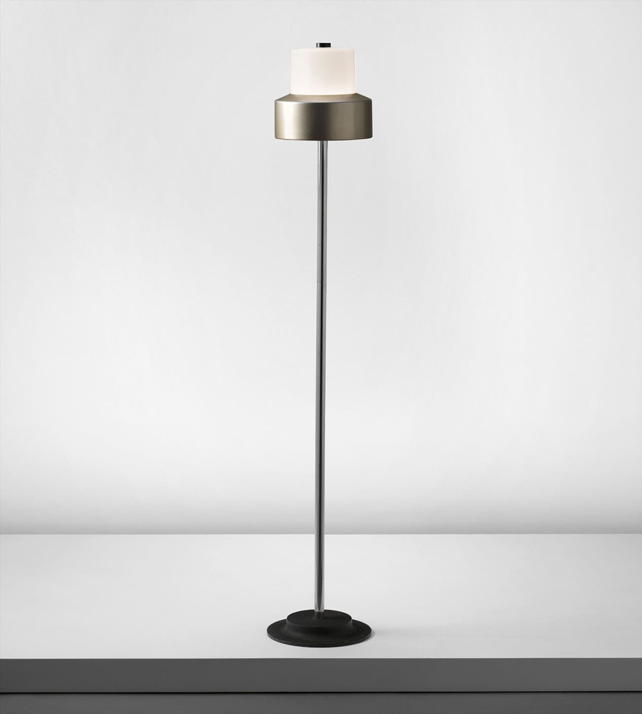 Italian | B. 1912 D. 1985Rising above the devastation of World War II, post-war Italian design reached new heights of productivity and ingenuity, particularly in the realm of lighting. Gino Sarfatti is among the most celebrated lighting designers from this fruitful period. Before founding his company Arteluce in 1939, Sarfatti studied aeronautical engineering. He brought the inventiveness of a self-taught outsider to the field of lighting design, while his mechanical background lent lightness and ingenuity of construction. Poetic underpinnings are also evident in lamps such as model no. 1034 (sometimes referred to as the "Vine" lamp), which features a nearly 8' twisting brass stem graced with nine delicate, articulating white shades like buds on a flower.