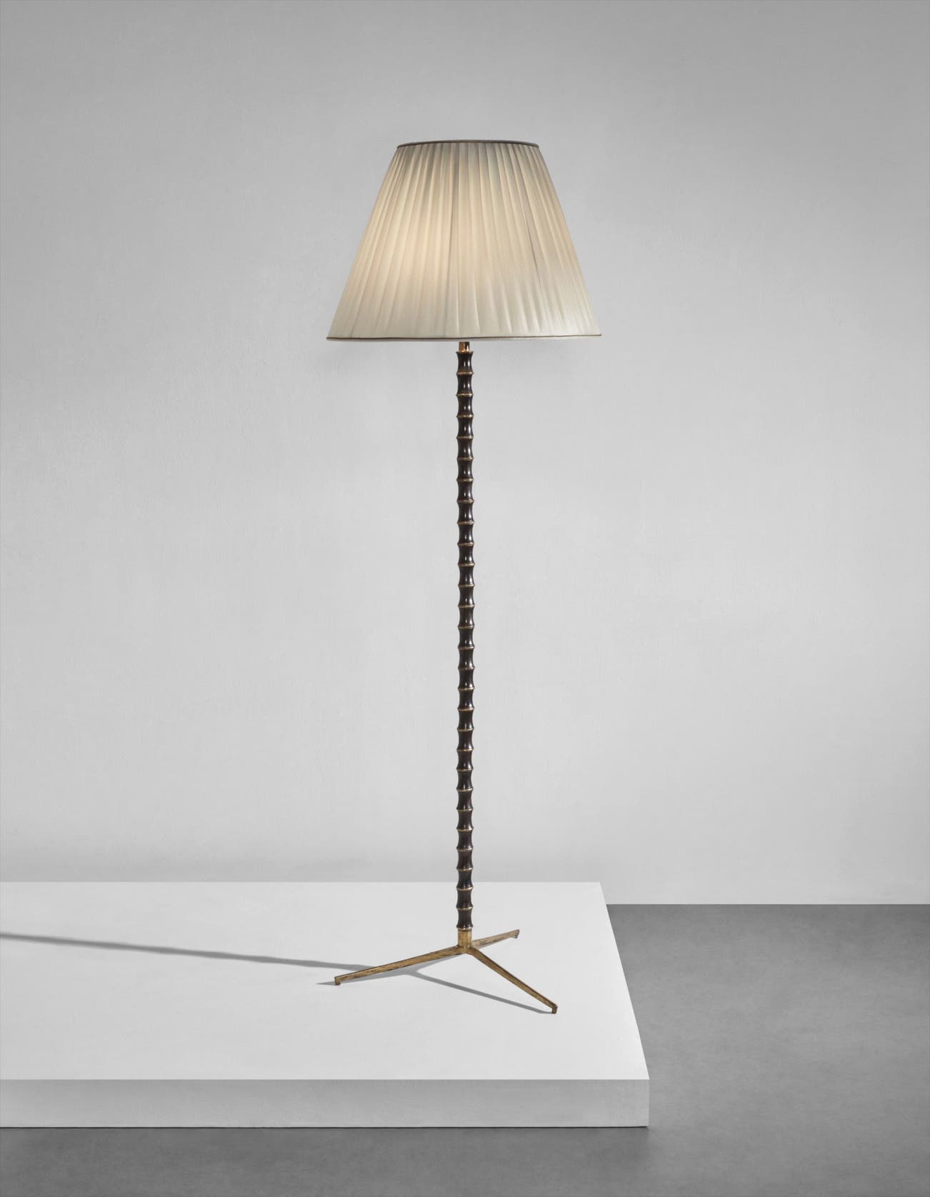 Italian | B. 1912 D. 1985Rising above the devastation of World War II, post-war Italian design reached new heights of productivity and ingenuity, particularly in the realm of lighting. Gino Sarfatti is among the most celebrated lighting designers from this fruitful period. Before founding his company Arteluce in 1939, Sarfatti studied aeronautical engineering. He brought the inventiveness of a self-taught outsider to the field of lighting design, while his mechanical background lent lightness and ingenuity of construction. Poetic underpinnings are also evident in lamps such as model no. 1034 (sometimes referred to as the "Vine" lamp), which features a nearly 8' twisting brass stem graced with nine delicate, articulating white shades like buds on a flower.