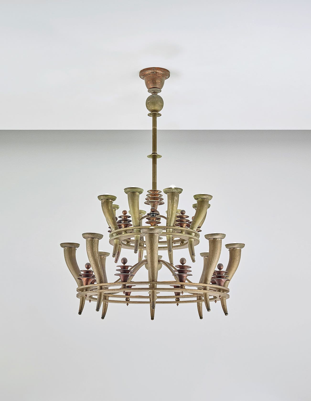 Painted copper, painted brass.