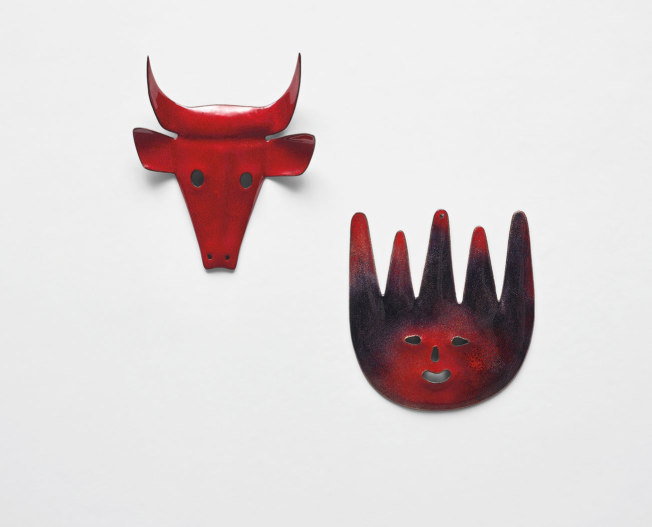 Reverse of each signed De Poli and with paper label printed SMALTI/DE POLI/-BUCRANIO-/DIS. GIO PONTI and SMALTI/DE POLI/-DIAVOLO-/DIS. GIO PONTI respectively.