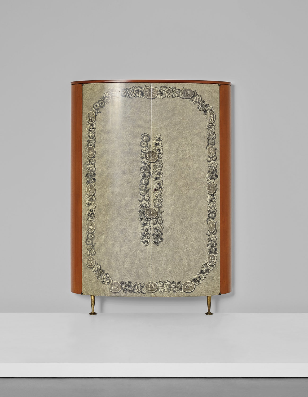 Both Ponti and Fornasetti revered Italy’s cultural heritage, in particular the visual language of the Renaissance and classical art and architecture. In keeping with classical ideals of art, throughout his career Ponti sought to create forms that represented universally recognised, harmonious beauty, the 'finished form...unchangeable, unrepeatable, unique and coherent.' With his use of decorative elements, such as Fornasetti’s patterns, Ponti skirted more austere definitions of modernism held by many of his contemporaries who eschewed pattern and historical reference. These elements come together seamlessly in the present wardrobe, a perfect example of the symbiosis of these two prolific talents during the full flowering of their collaborations in the early 1950s.
