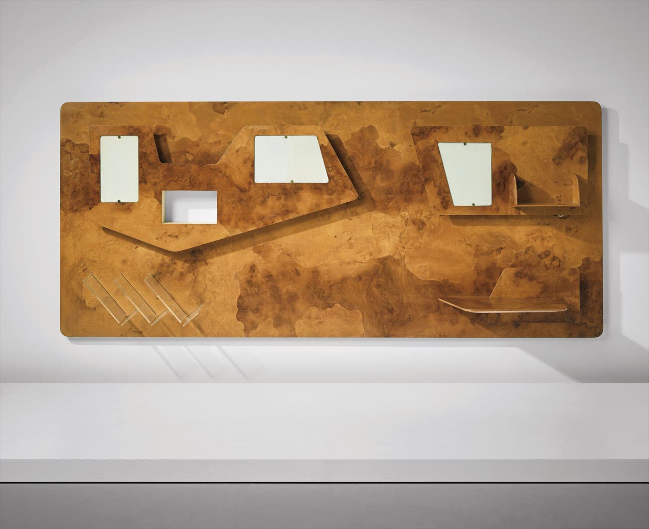 For preserving a set of three pieces of furniture from the important series designed by Gio Ponti and executed by master cabinetmaker Giordano Chiesa for Nordiska Kompaniet, the foresight of a Nordic collector should be credited. The set comprises two multi-functional wall units of complementary use to a desk and bed, respectively, and a chest of drawers. Within the most advanced production of the Milanese architect, designer and artist, these works are an exemplary testimony to Italian design production of the time, of its florid expansion and growth to international relevance.