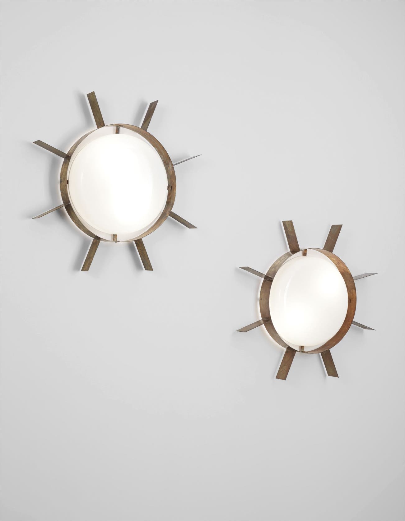 The "Il Sole" light was originally designed by Gio Ponti for the interior of the Istituto Gallini in Voghera, Italy (1956-1962). Though originally conceived as a ceiling light and fitted with a circular fluorescent bulb, the present model is a wall-hanging variant fitted with incandescent bulbs, which cast a warmer light more suitable to domestic interiors.