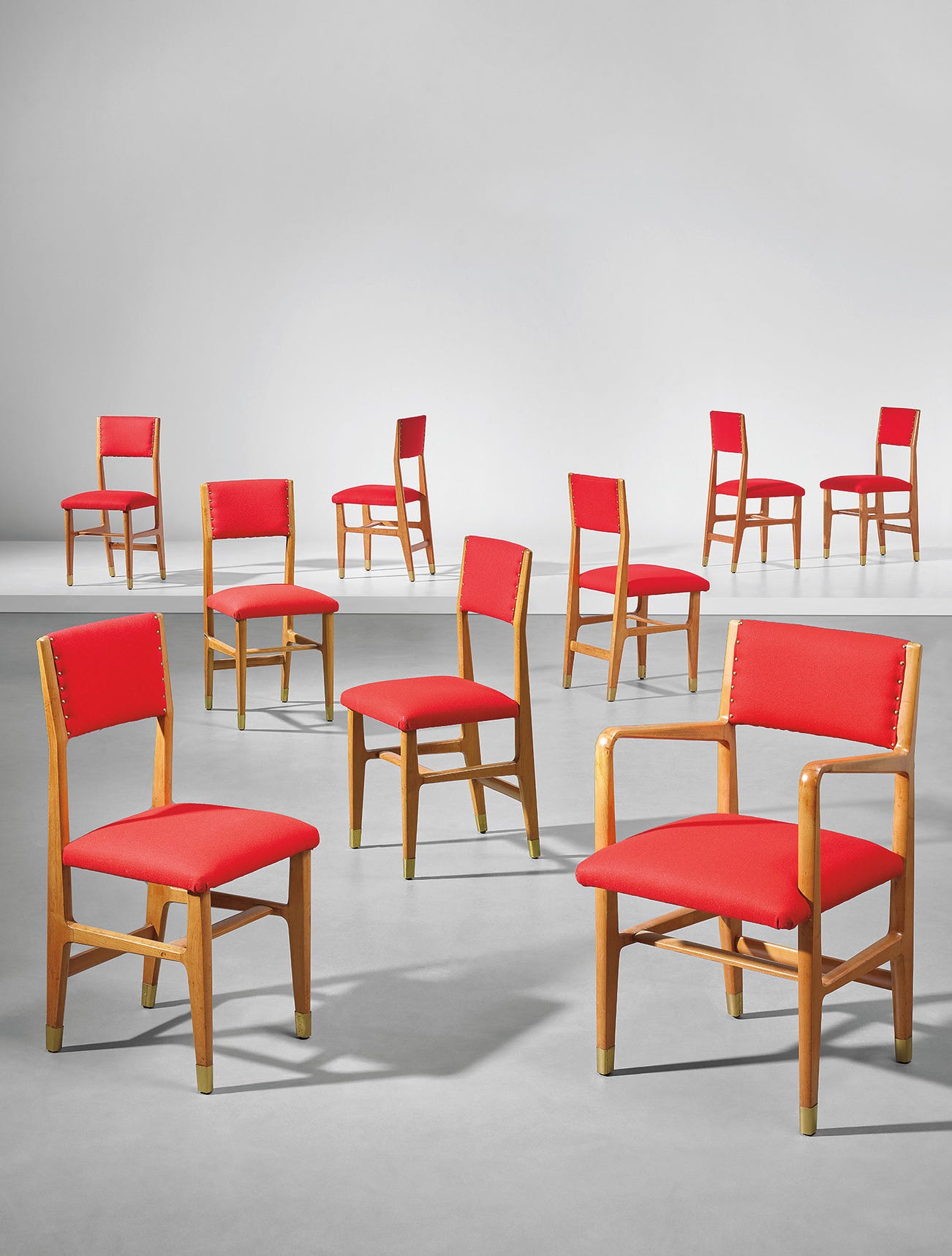 Set of eight side chairs and one armchair, designed for the public administration offices, Forlì