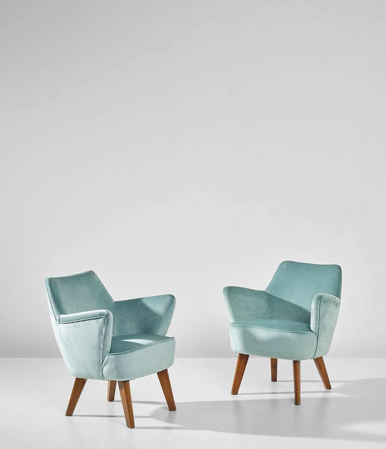 Pair of armchairs, designed for the first class ballroom of the 'Conte Biancamano' ocean liner