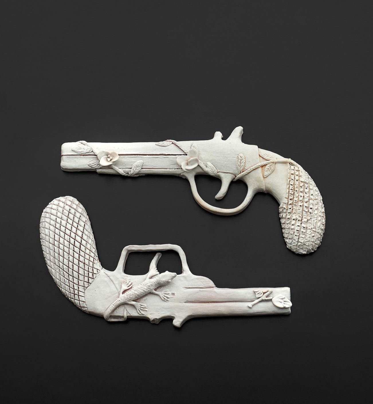 Two pistol-form sculptures