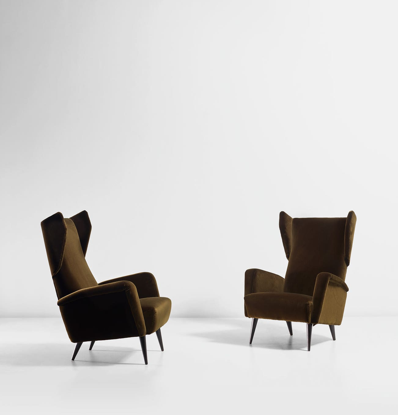 Pair of wingback armchairs, designed for the Hotel Royal, Naples