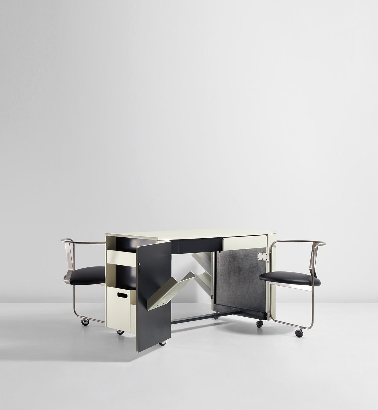 Desk with pair of incorporated chairs, model no. A012, from the 'Apta' series