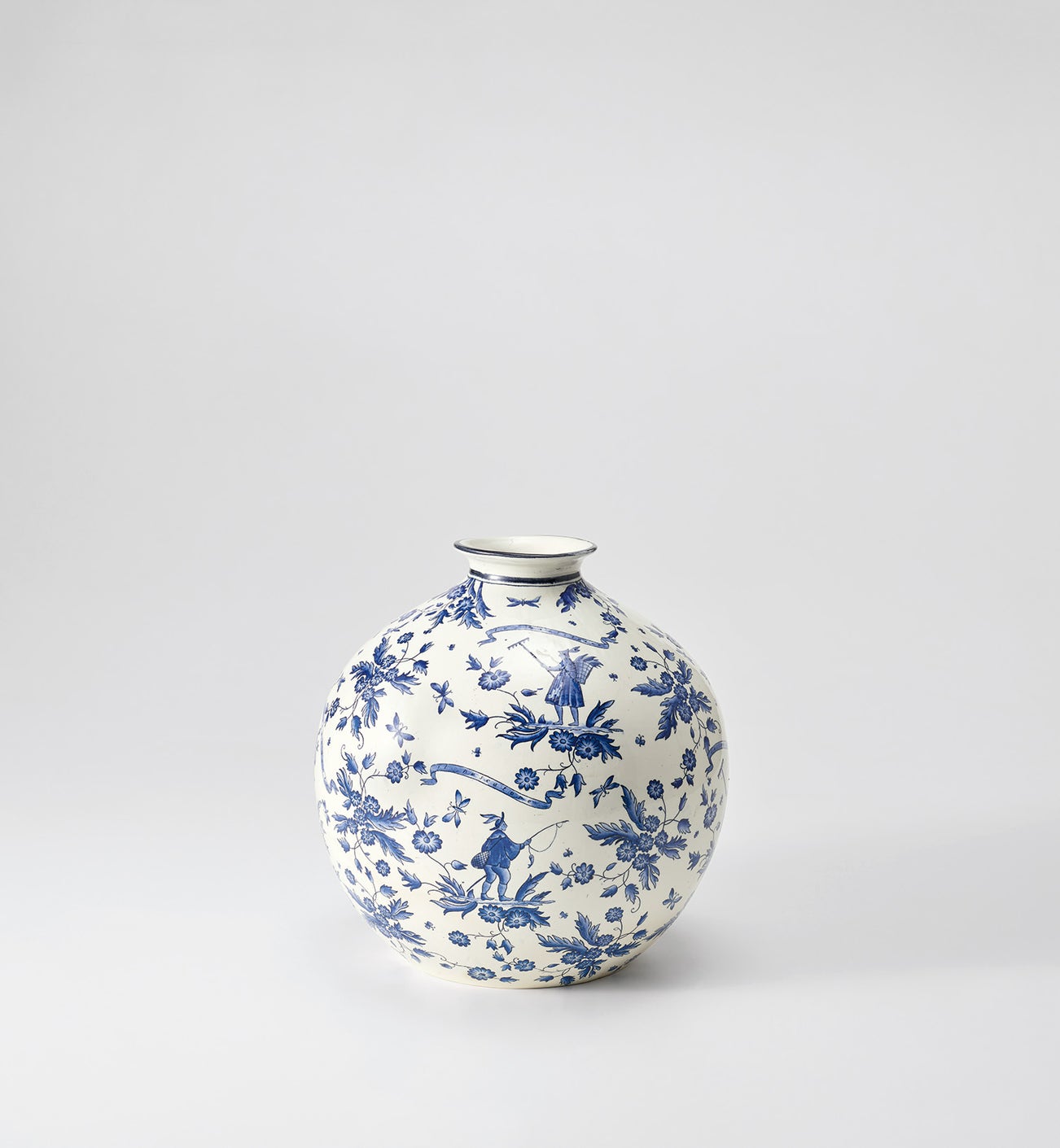 The present 'Ermione' design was inspired by traditional motifs from eighteenth-century Milanese majolica. Gio Ponti applied the motif to different forms in both monochrome and polychrome variations. The unique combination of the present vase's form and the application of the 'Ermione' motif across the entire surface suggests the work might have been a prova.