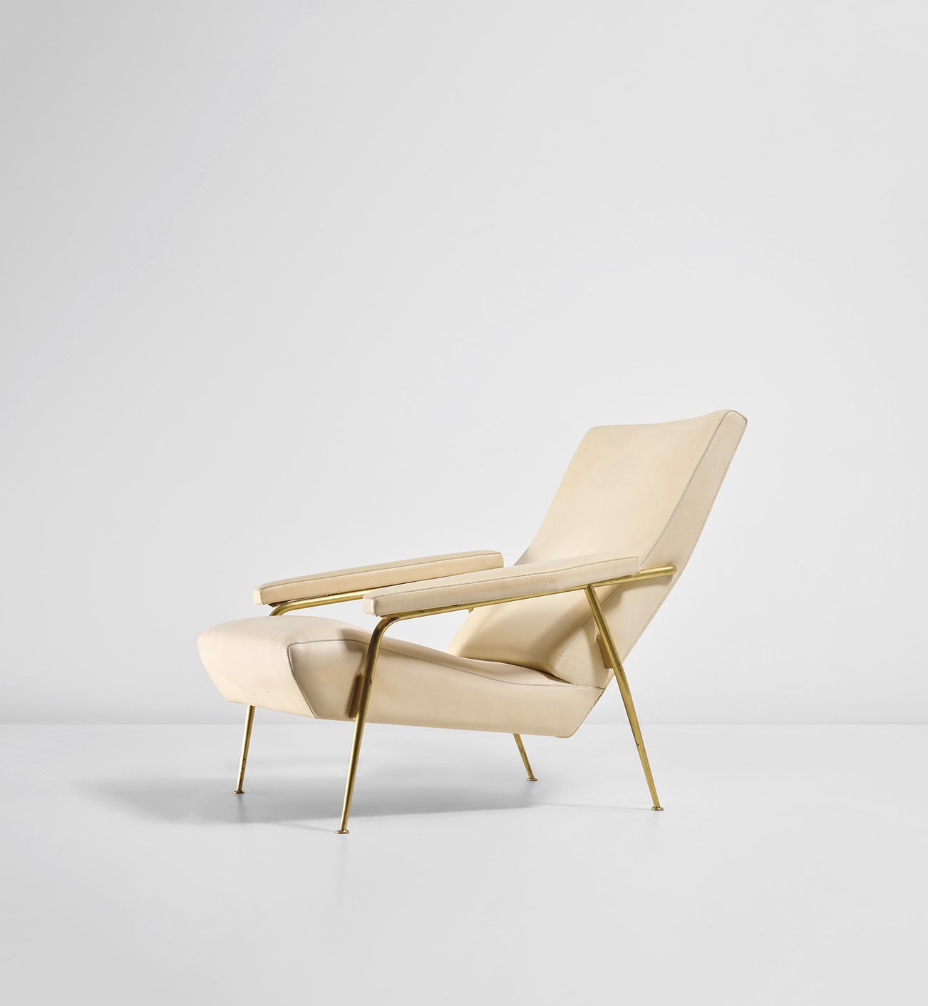 The present ‘Distex’ armchair, model no. 807, designed by Ponti in 1953 and manufactured by Cassina, has something special which distinguishes this example from its sisters that inhabited other interiors designed by the architect during that period. It is precisely the armchair that Ponti selected to be part of the furnishings of his own apartment on the eighth floor of Via Dezza 49, Milan. A ‘demonstration’ apartment, which Ponti loved to create in order to illustrate a new modern lifestyle. The armchair’s creamy white faux leather upholstery harmonised perfectly with the sofa and armchairs, model no. 845, created at that time by Ponti for Cassina.