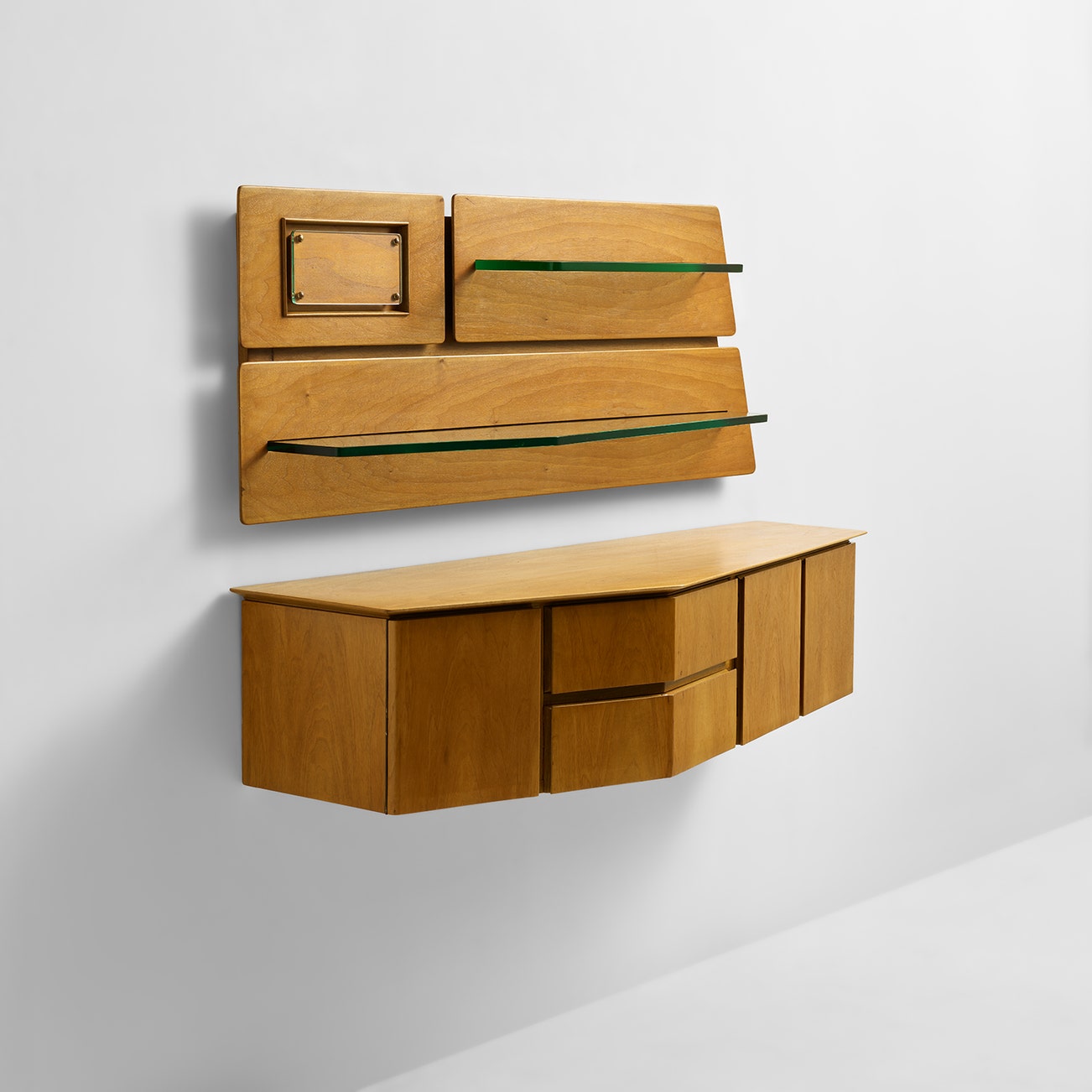 Wall-mounted unit and shelves with integrated picture frame