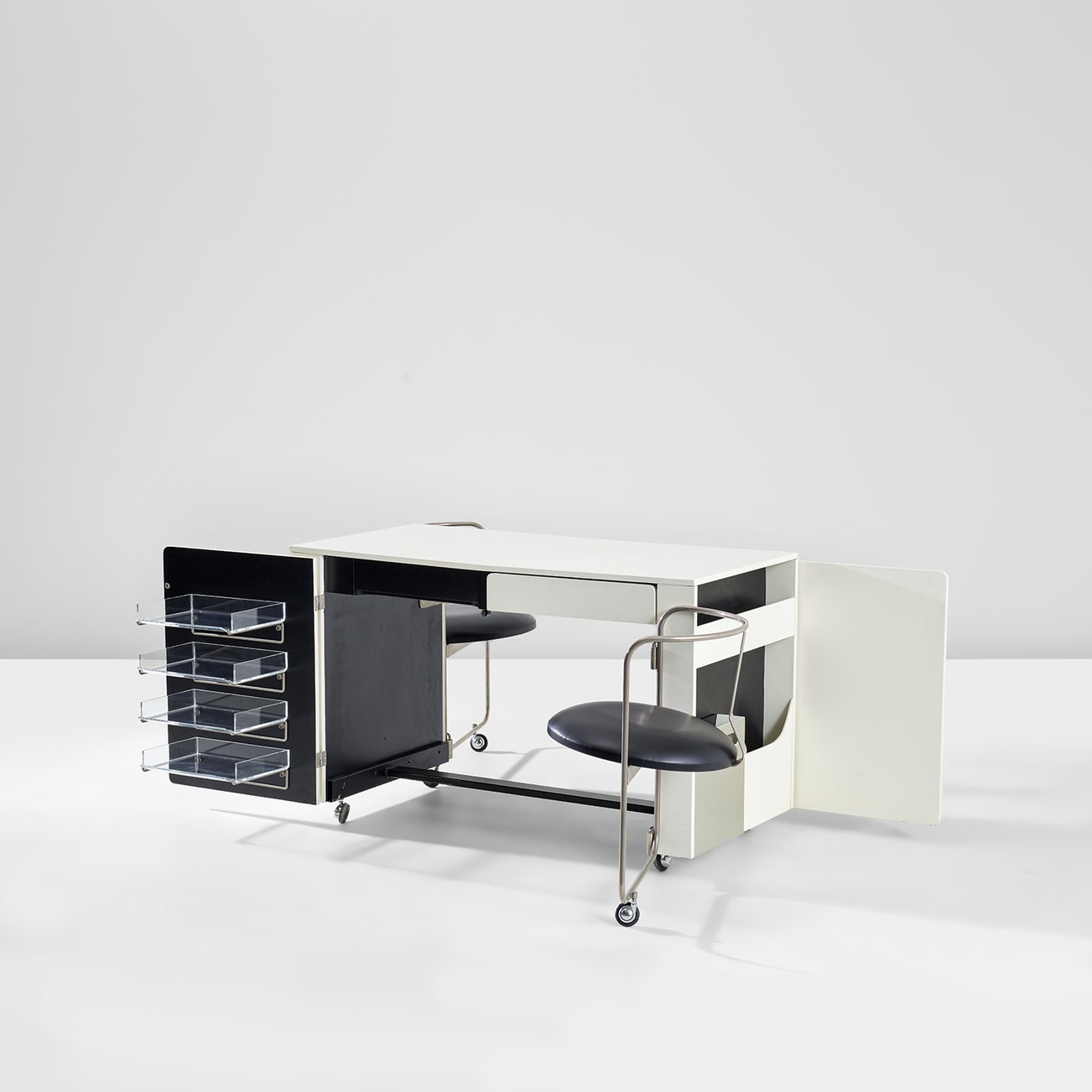 Desk with pair of integrated chairs, model no. A012, from the 'Apta' series