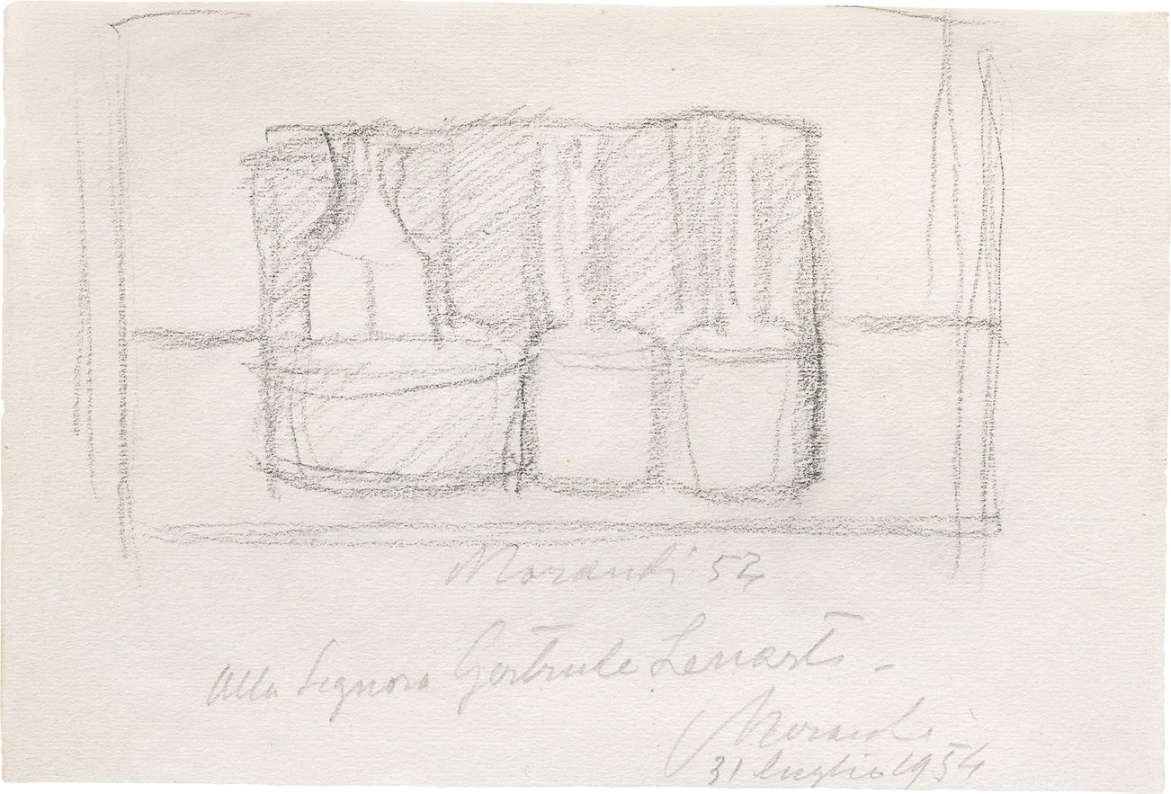 signed, dedicated and dated “Morandi 54 Alla Signora Gertrude Lenart Morandi 31 Luglio 1954” lower center