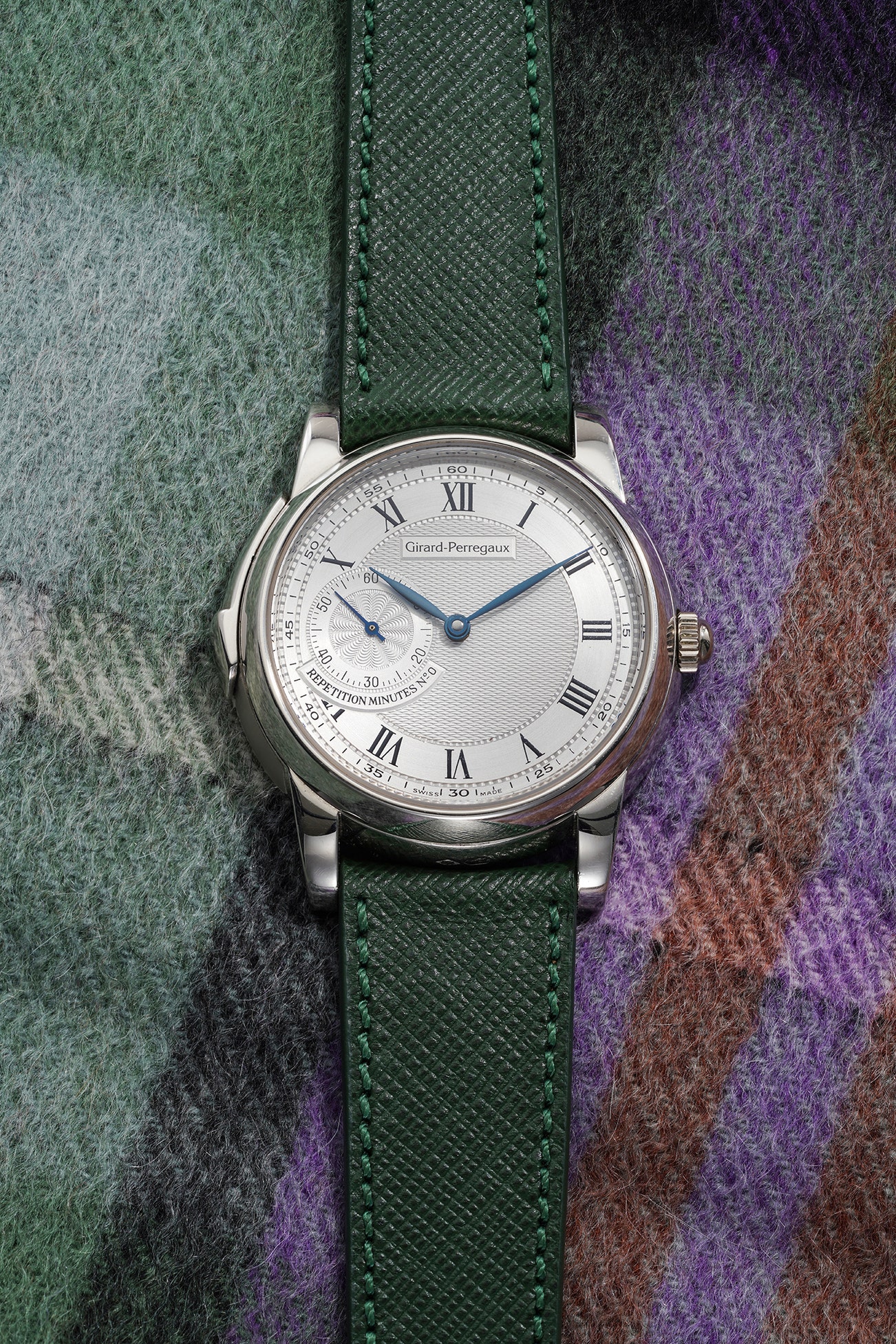 A possible prototype platinum wristwatch with minute repeater and subsidiary seconds register, numbered 0