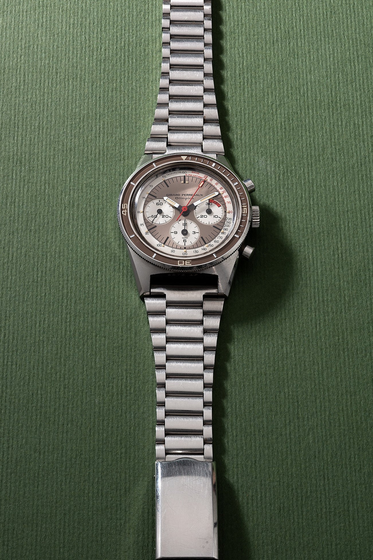 In the 1950s, Girard-Perregaux debuted the Olimpico series to celebrate the Olympic Games, and for the next 30 years the manufacturer released a different model every four years. The present watch, made in 1968, was Girard-Perregaux’s commemorative endeavor dedicated to the 1968 Games in Mexico.
