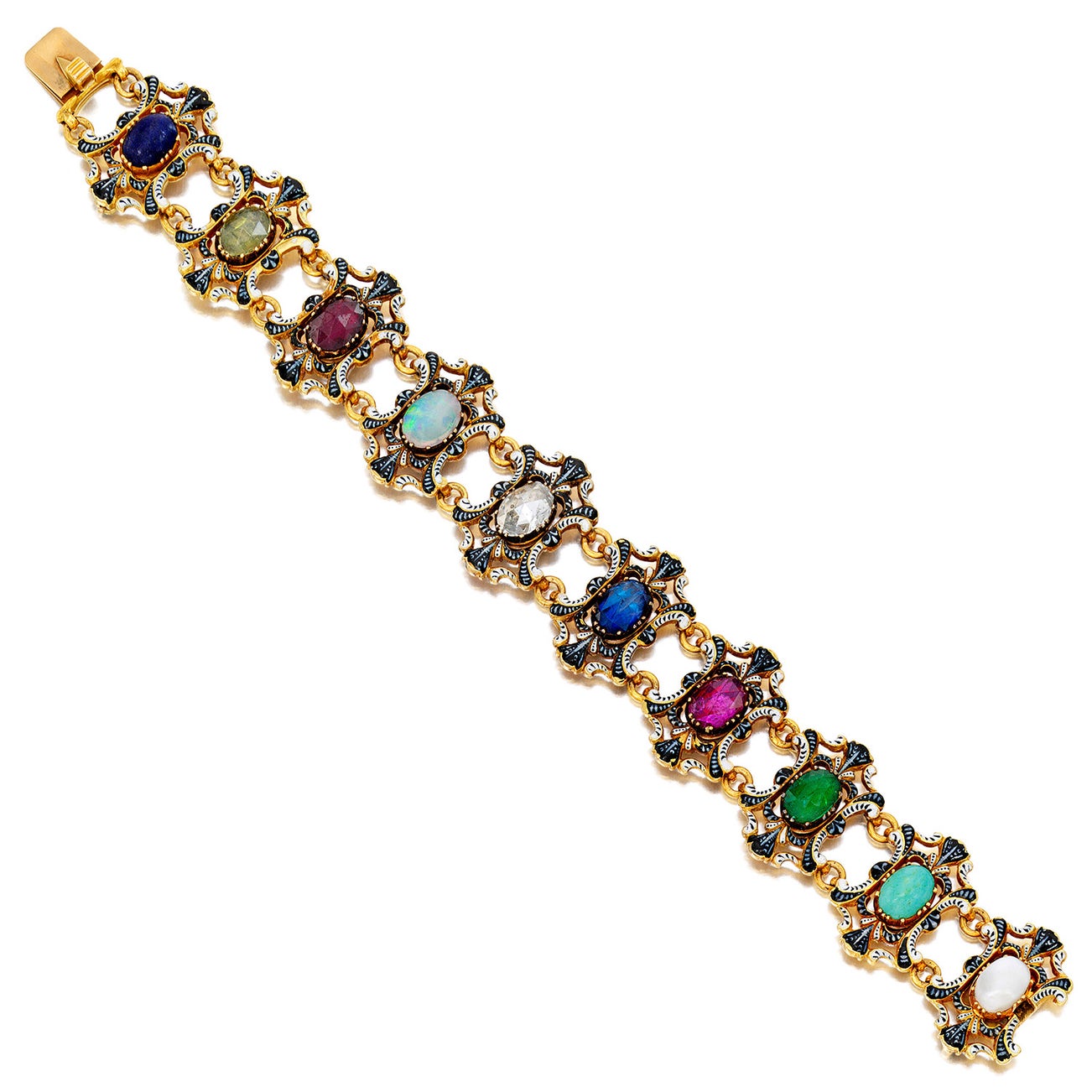 An Enamel, Diamond, Multi-Gem, and Gold Bracelet