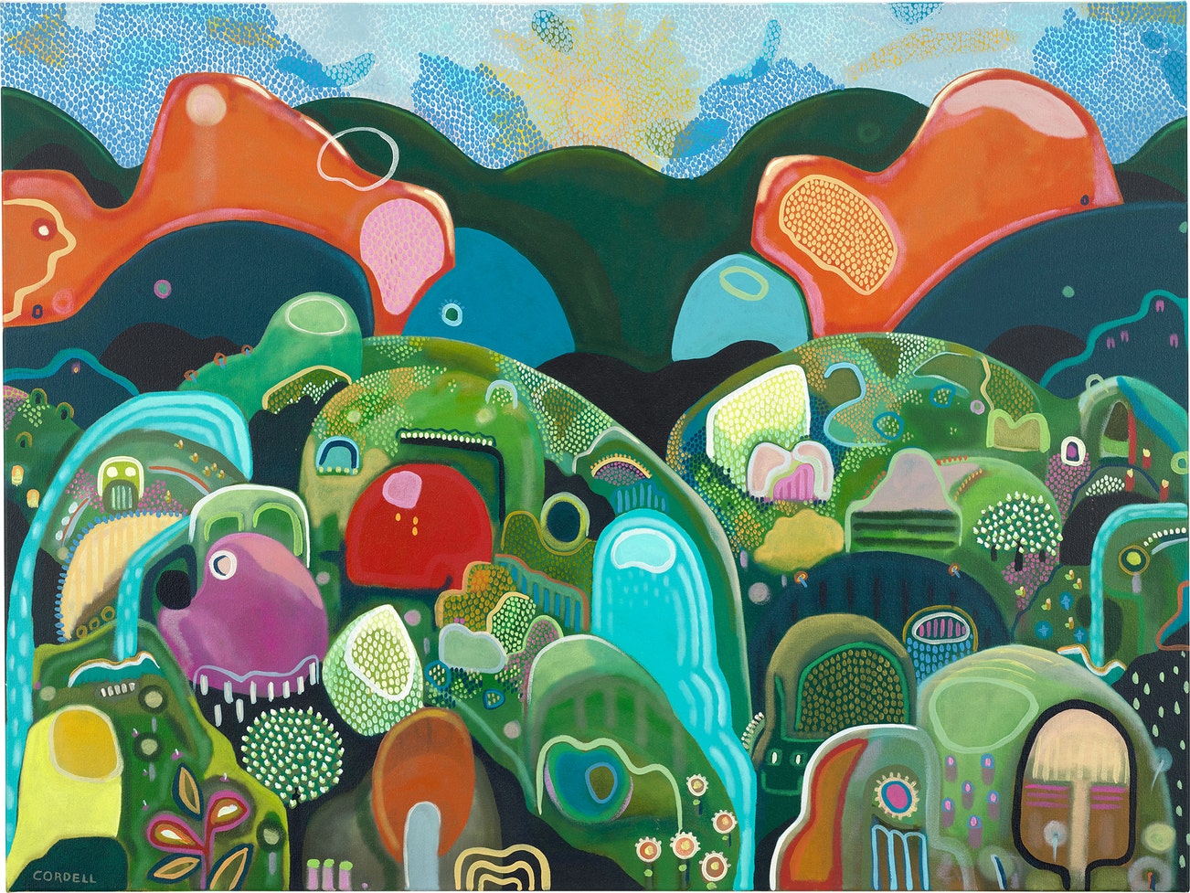 signed 'CORDELL' lower left; further signed, titled and dated '"Some Waterfalls" GLENDON CORDELL GCordell 2022' on the reverse