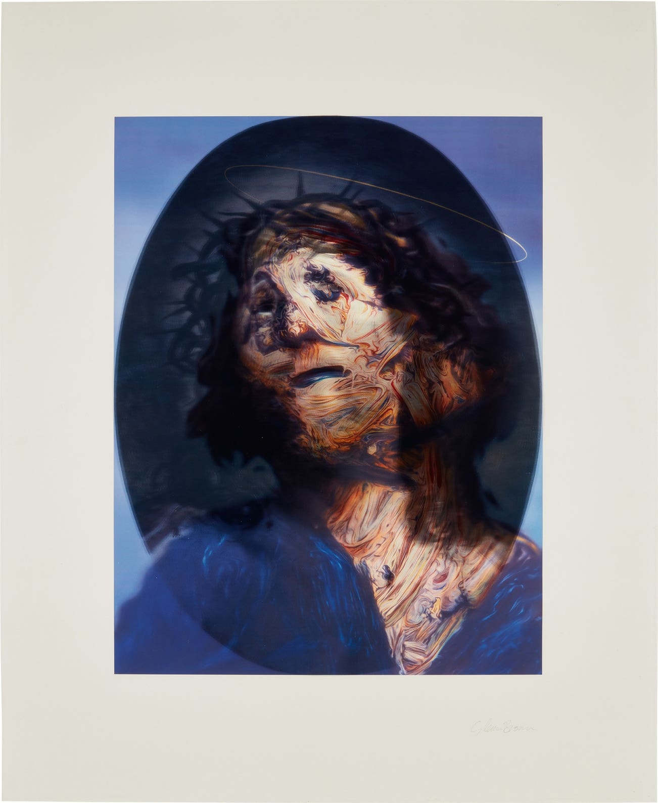 Digital pigment print in colors, on Hahnemühle paper, with full margins, layered underneath a transparency printed in colors flush-mounted to Plexiglas.