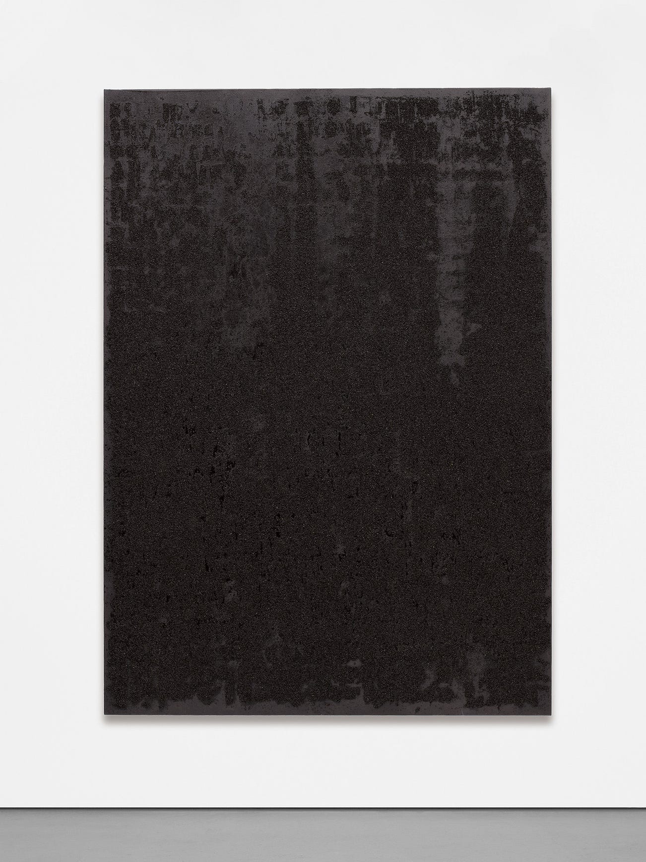 silkscreen, coal dust and oil stick on canvas