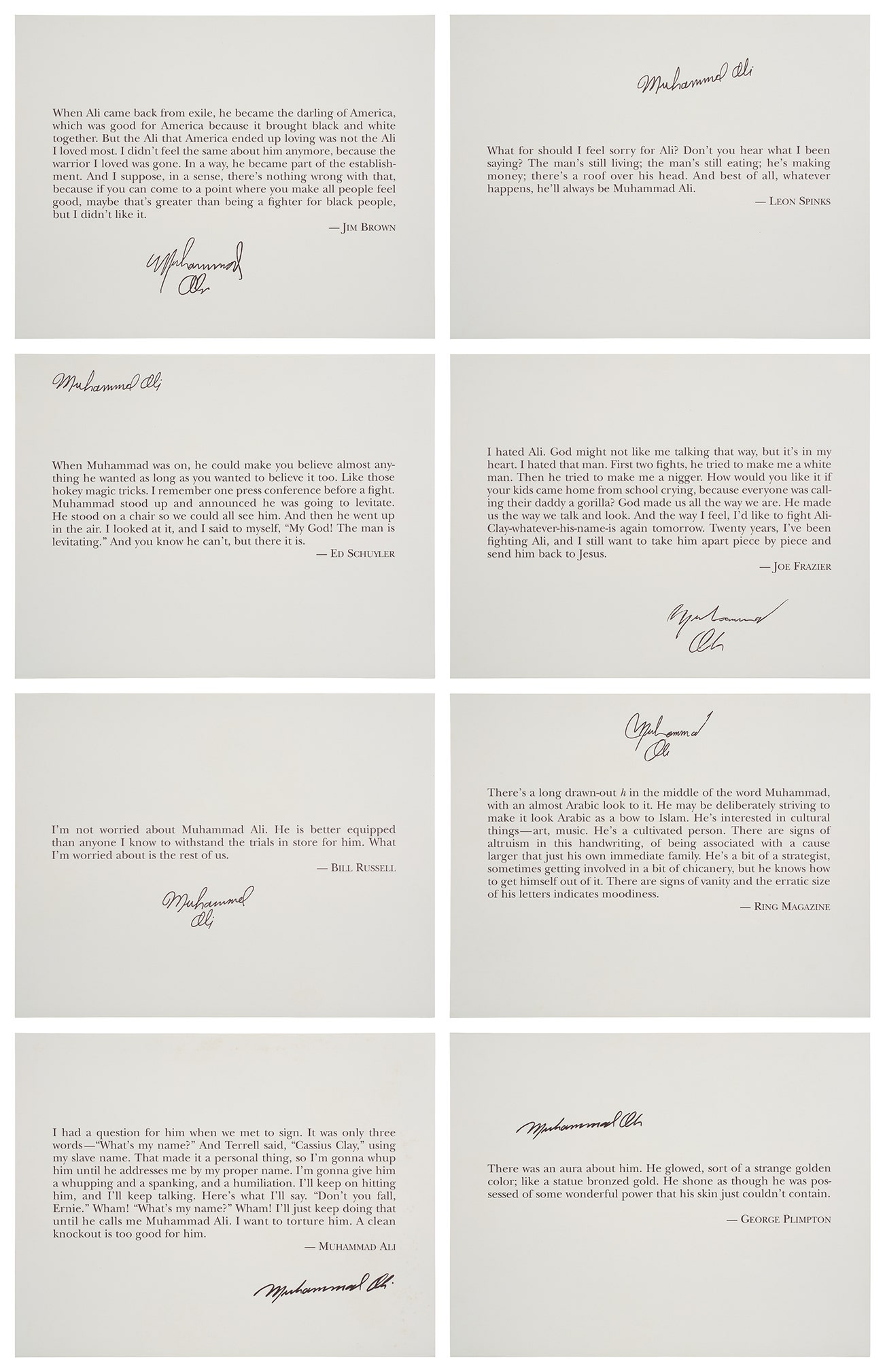 Seven signed and dated, the four duplicates and Muhammad Ali's quote unsigned, from the edition of 750, published by the MIT List Visual Arts Center, Cambridge, Massachusetts, all unframed.