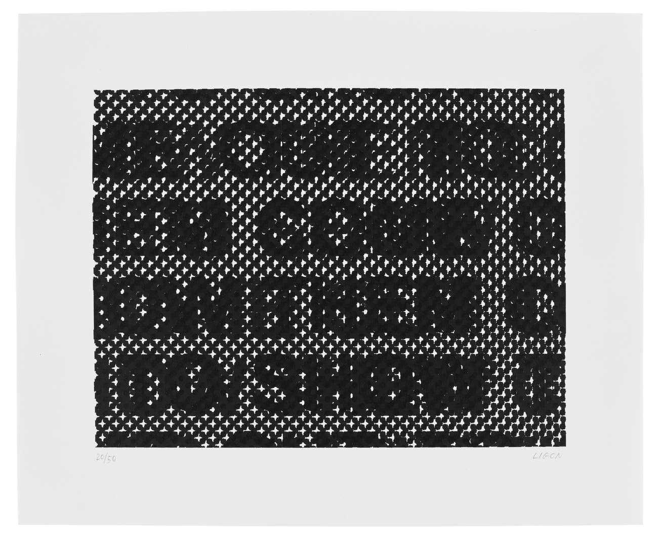 Signed and numbered 20/50 in pencil (there were also 40 artist's proofs), published by Camden Art Centre, London, to coincide with the exhibition Glenn Ligon: Call and Response, October 10, 2014 - January 11, 2015, printed in the United States, framed.