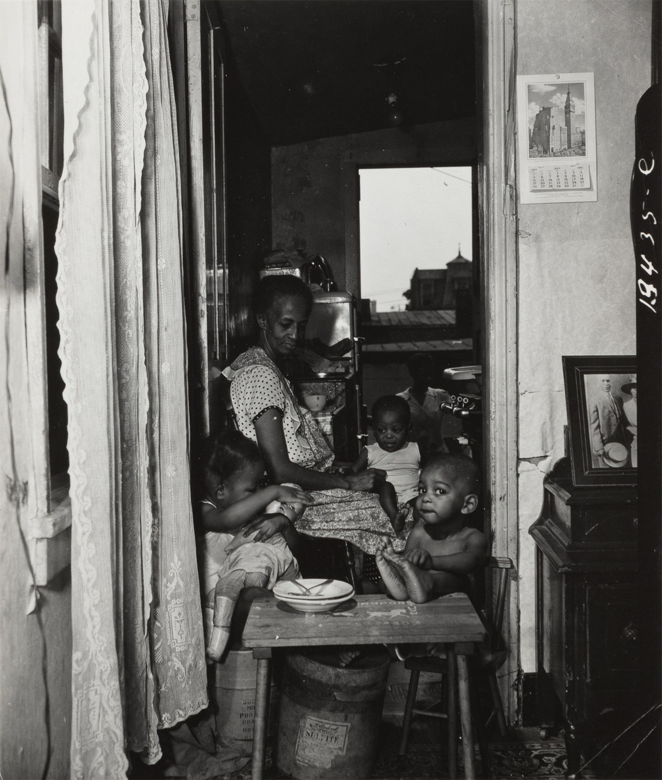 Mrs. Ella Watson with three grandchildren and her adopted daughter, July