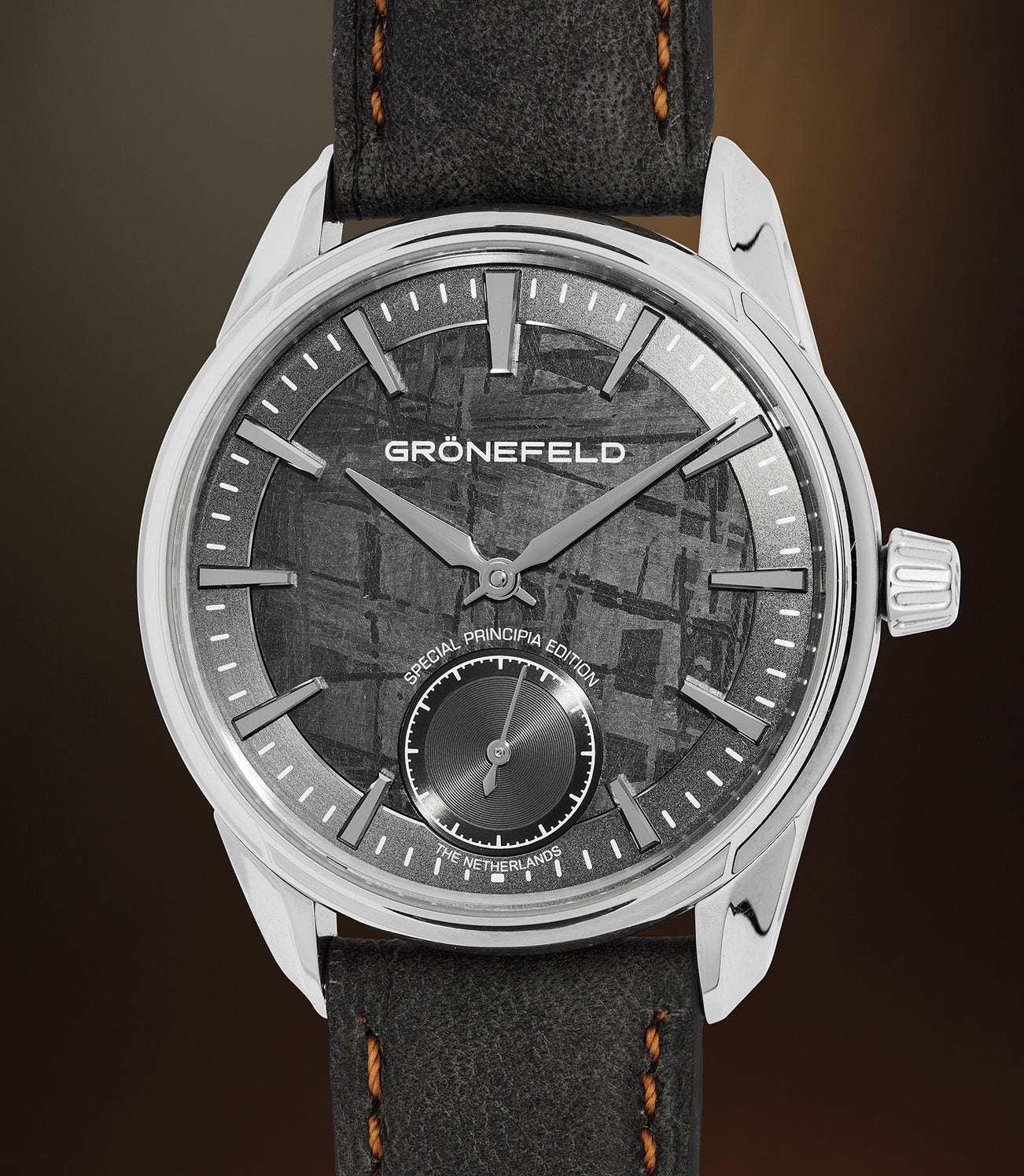 Accompanied by Grönefeld warranty card dated April 2022, hang tag, letter from Grönefeld brothers and note about special meteorite dial, fitted presentation box, and outer box.