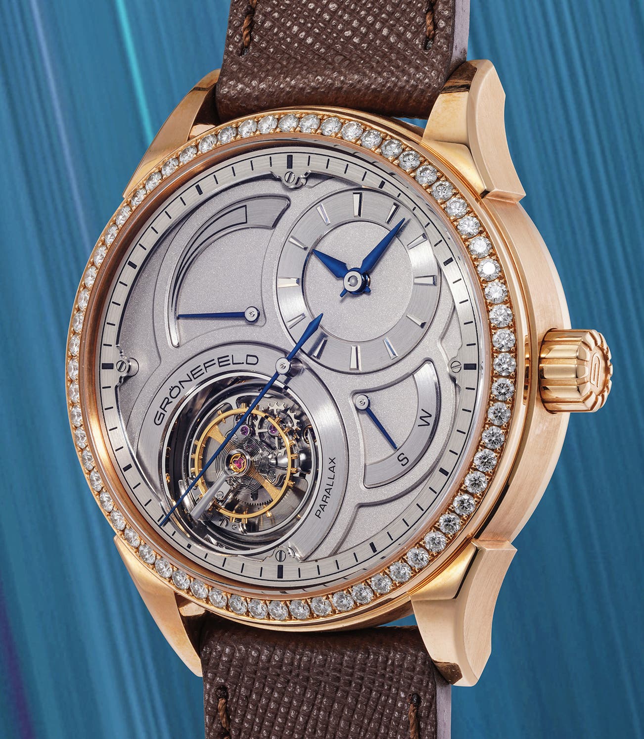 The Grönefeld Parallax Tourbillon was awarded the prestigious Grand Prix d'Horlogerie de Genève in 2014 for the best watch in the tourbillon categorie and in fact that very award – an historical relic in itself - accompanies the present watch.