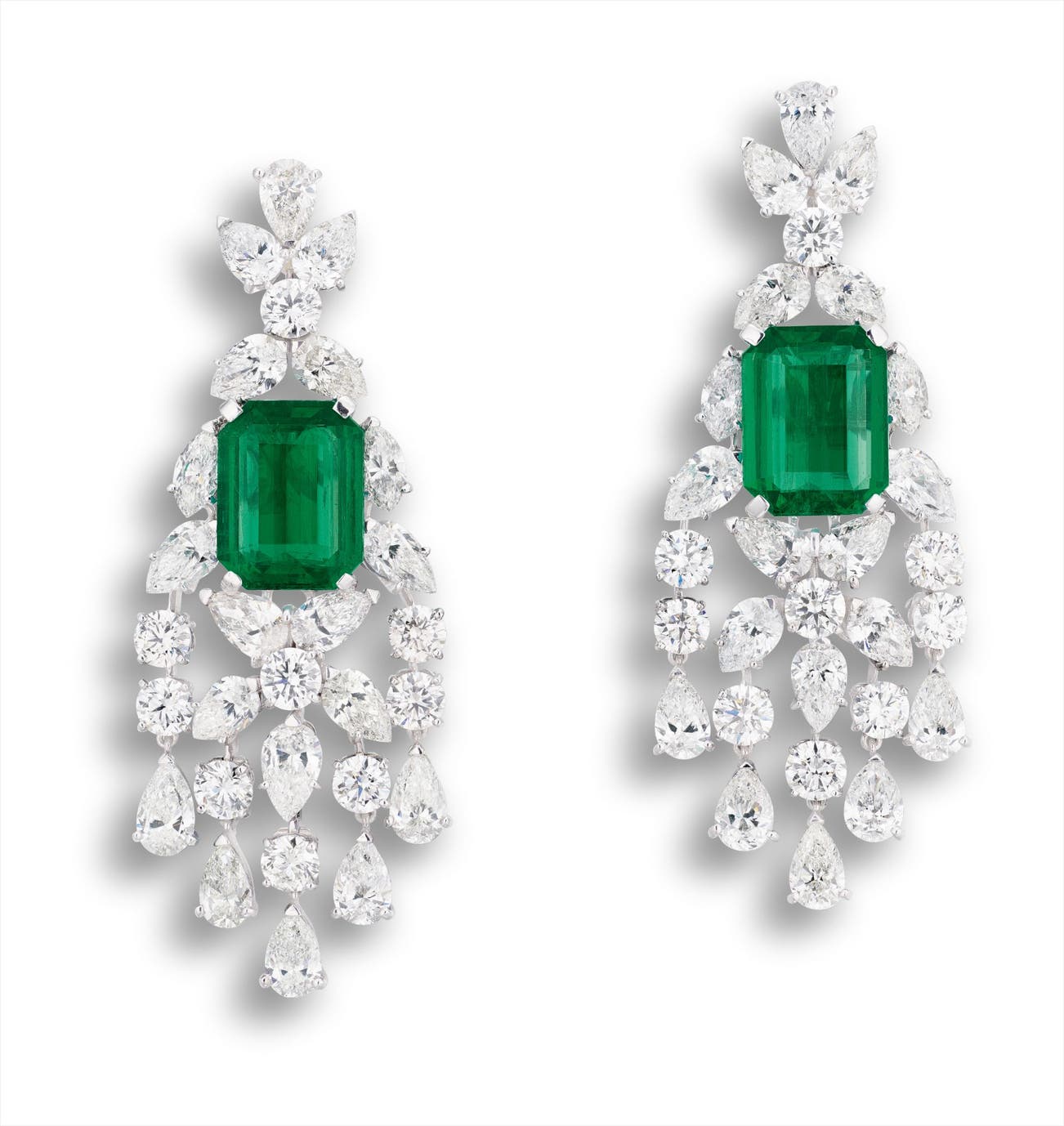 A Glamourous Pair of Emerald and Diamond Pendent Earrings, Graff