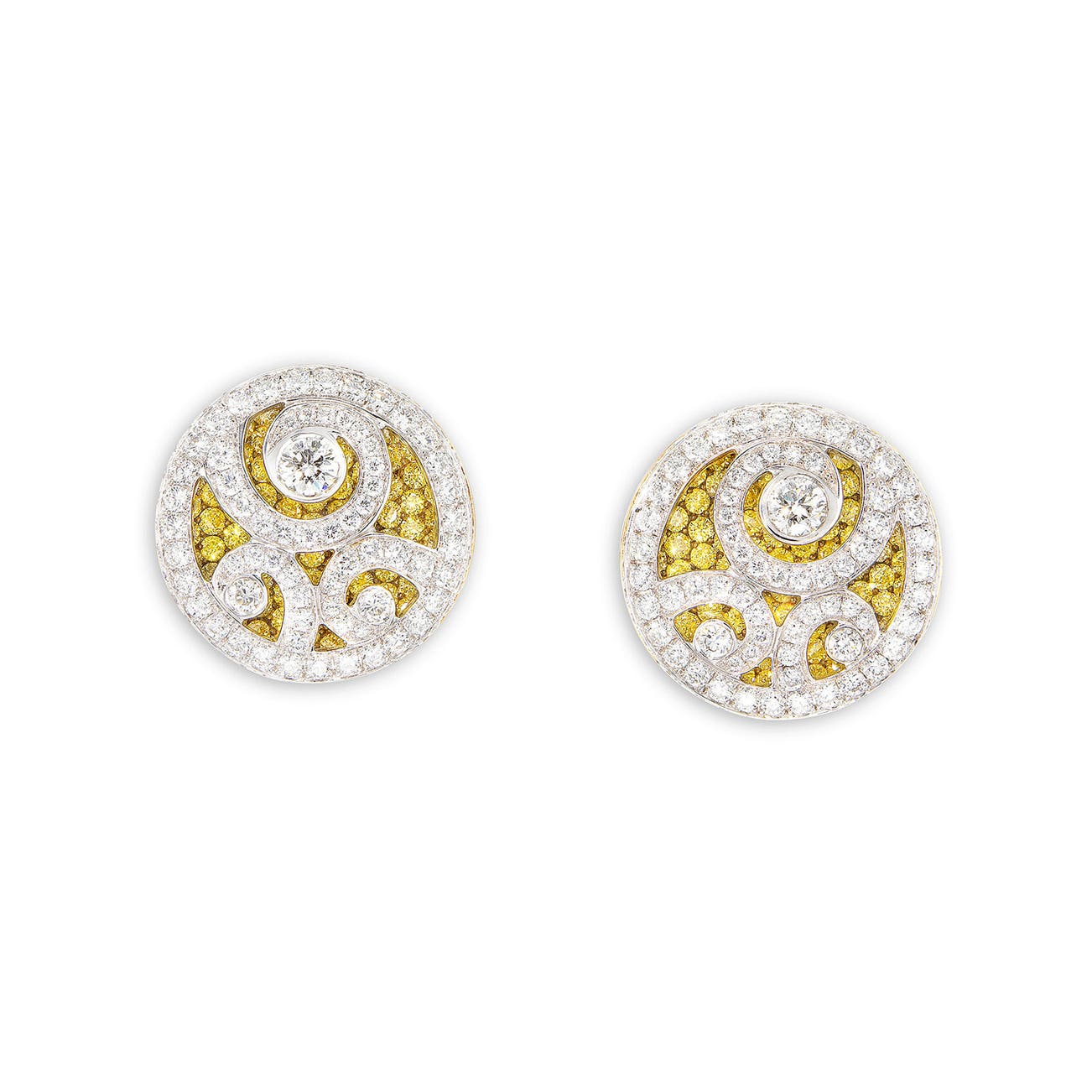 A Pair of Coloured Diamond and Diamond 'Diamond on Diamond' Earrings, Graff
