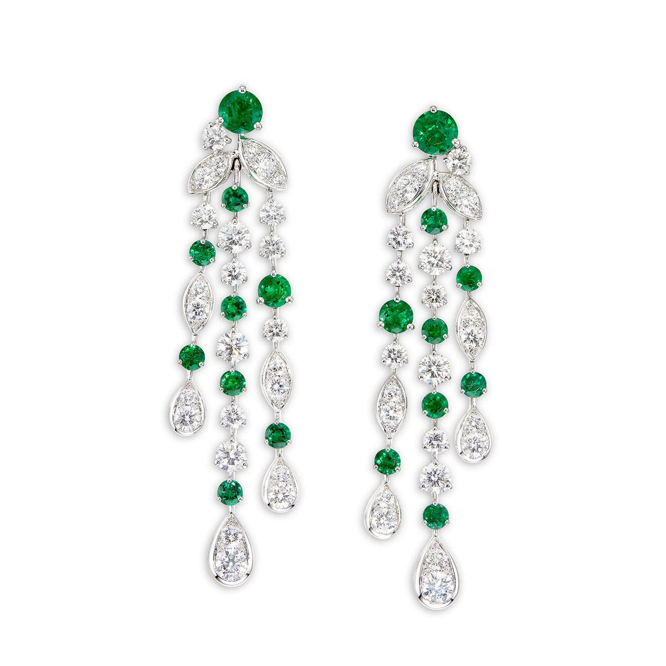 A Pair of Emerald and Diamond 'Rhythm' Ear Pendants, Graff