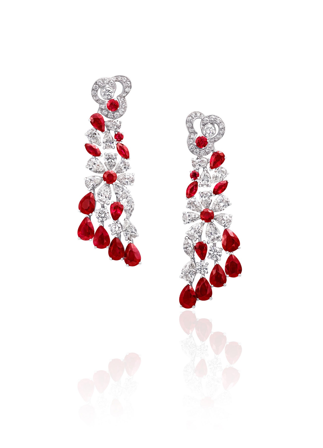 A Pair of Diamond, Ruby and Gold ‘Nuage Flower’ Earrings
