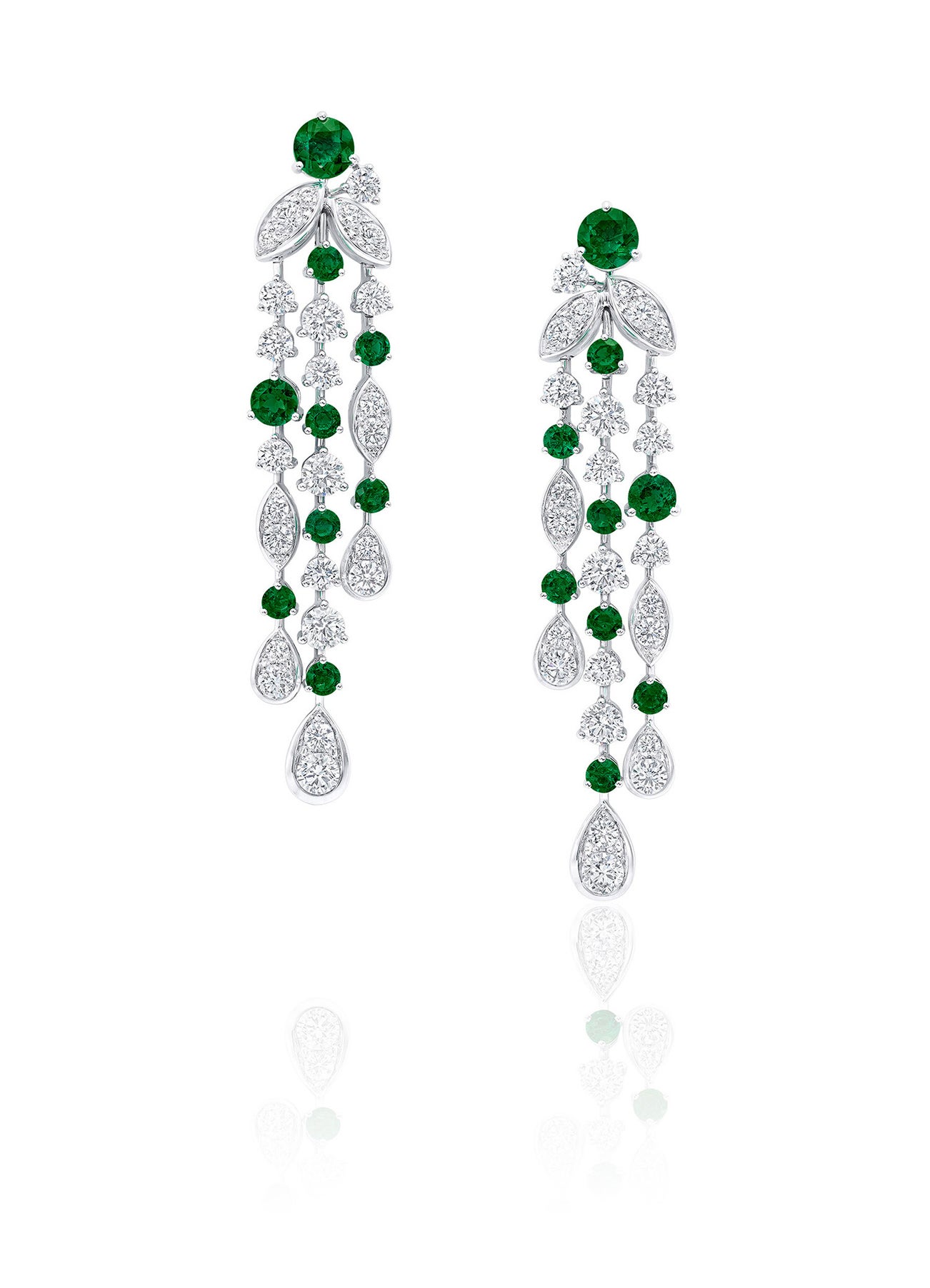 A Pair of Emerald, Diamond and Gold ‘Rhythm’ Earrings