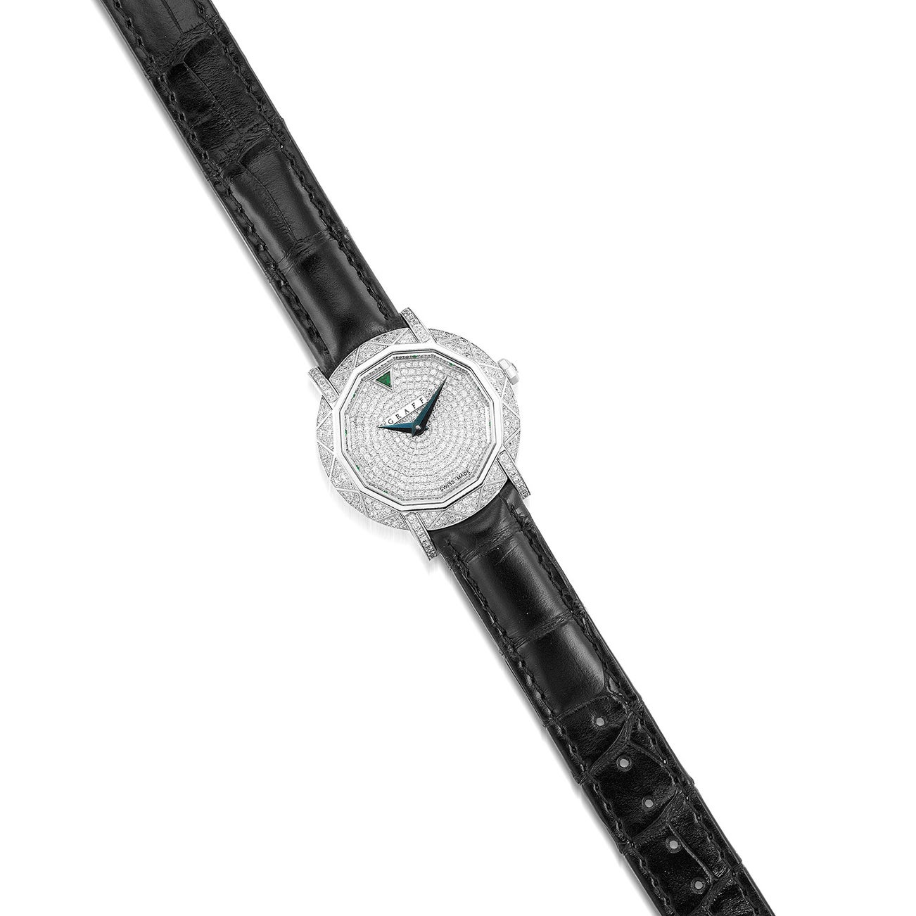 - Dial, case, strap and buckle signed Graff, numbered with Swiss assay mark for gold