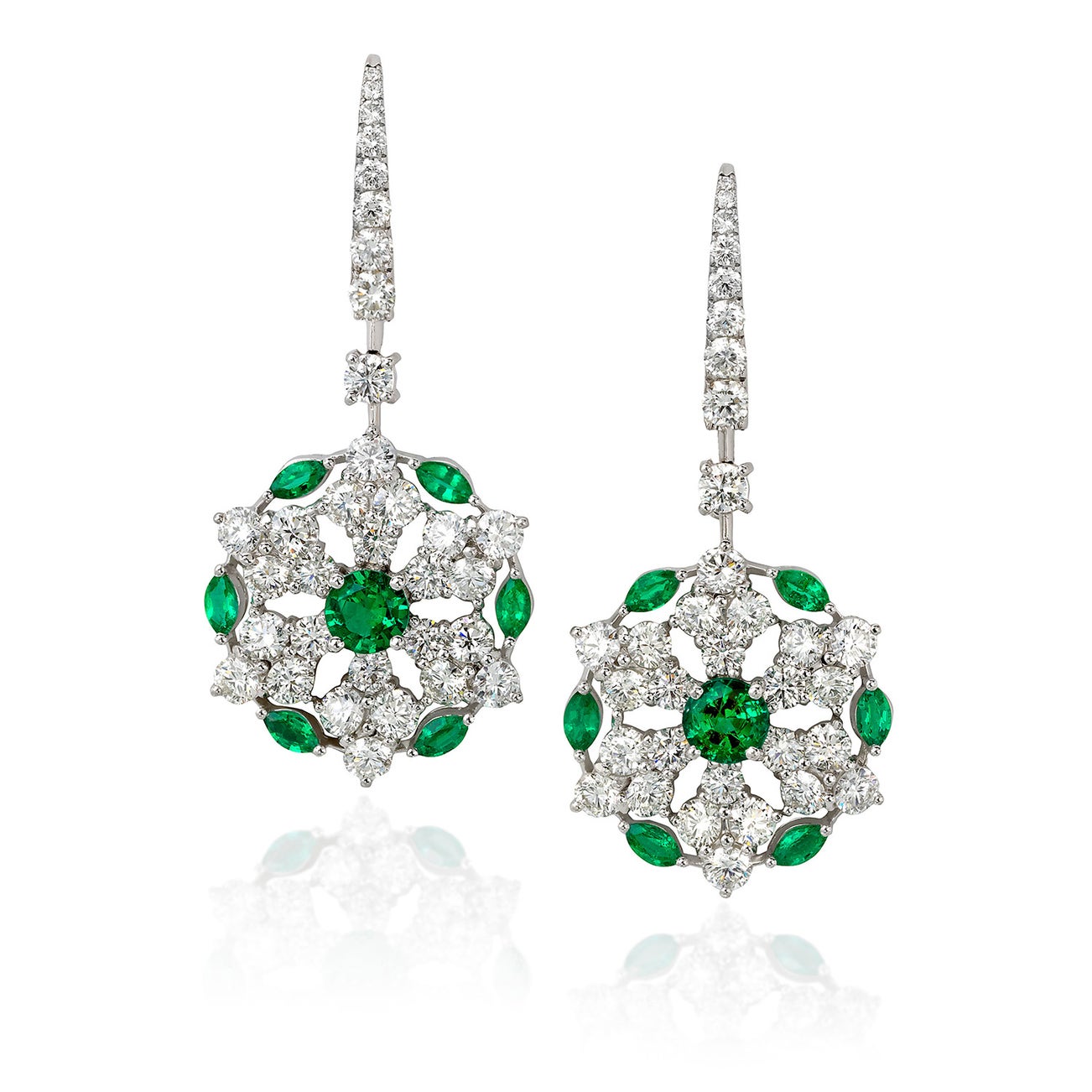 A Pair of Emerald, Diamond, and White Gold Earrings