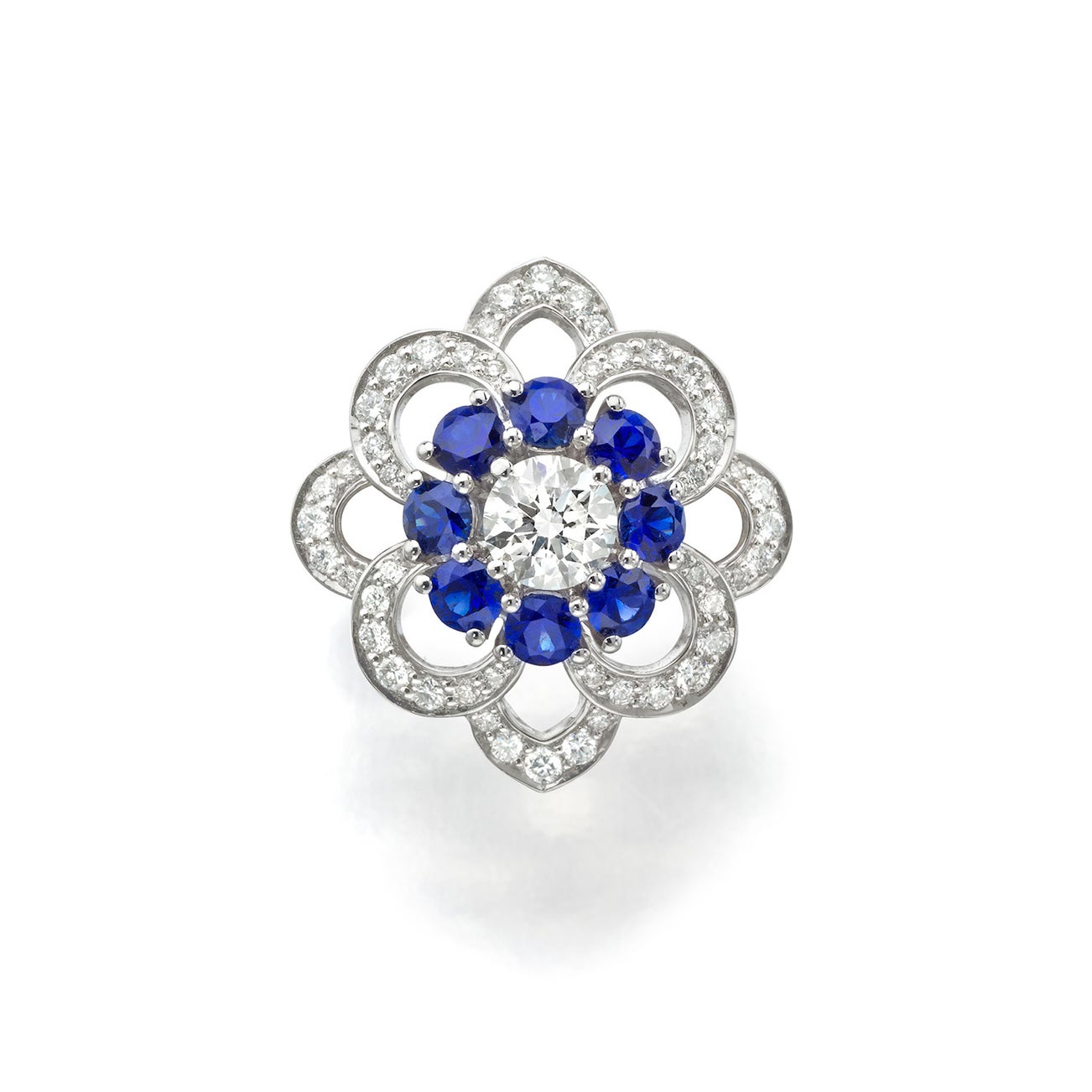 A Diamond, Sapphire, and Platinum Ring